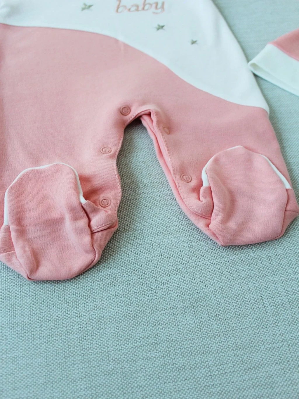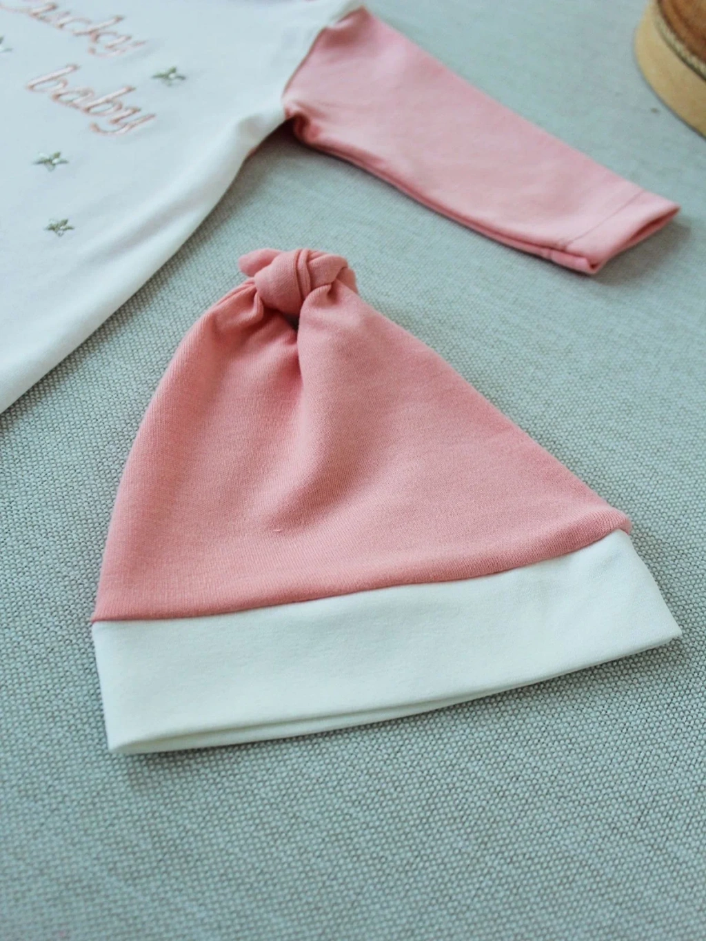 0-3 3-6 Ay Lucky Baby Nakışlı Es Çizgi Boy Şapkalı Kız Bebek Tulumu Pudra