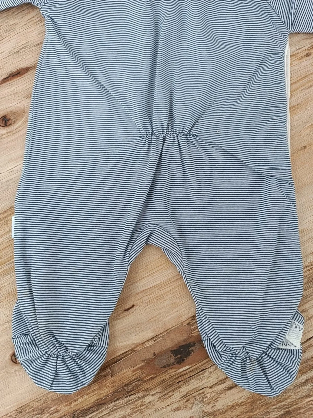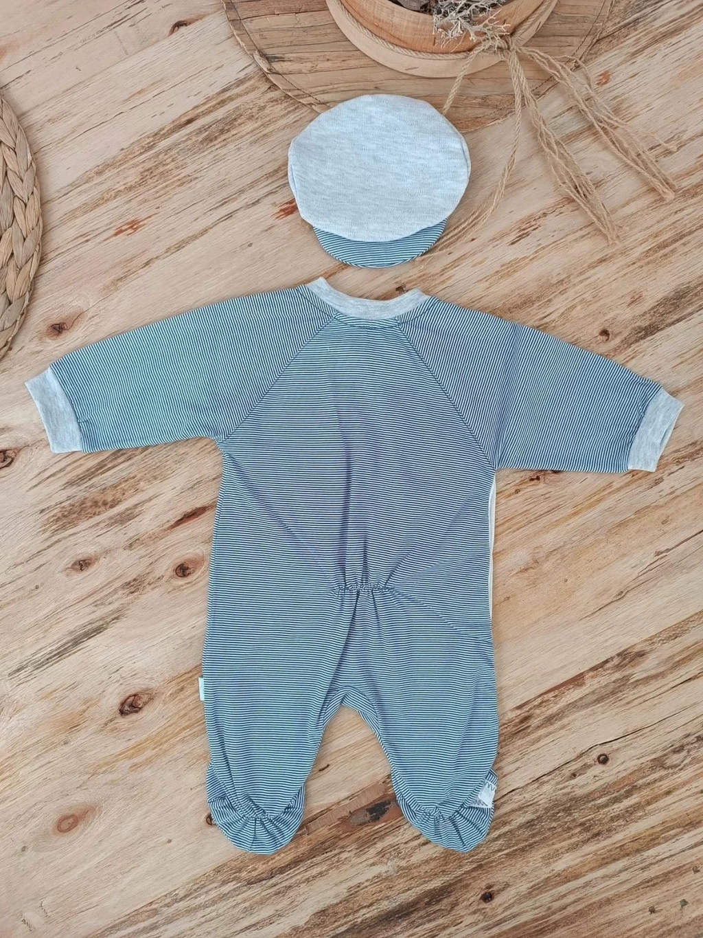 0-3 3-6 Ay Papyonlu Çizgi Desen Çıtçıt Kapama Kasketli Erkek Bebek Tulumu Lacivert