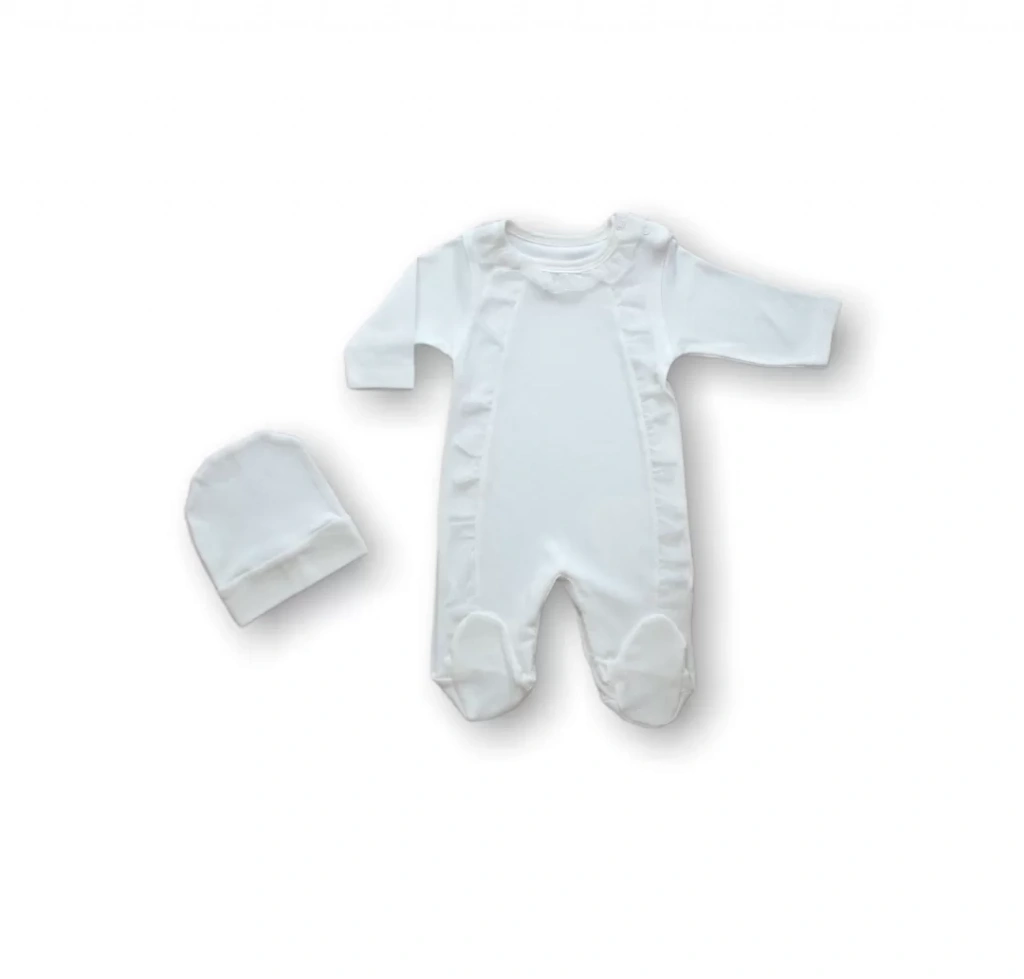 0-3 3-6 Ay Tüllü Fırfır Detaylı Şapkalı Uzun Kollu Kız Bebek Tulumu Ekru