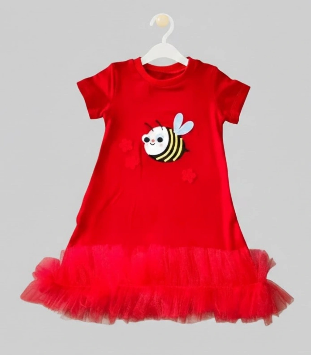 Minik Prenseslere Hem Şıklık Hem Konfor: Arıcık Nakışlı Kırmızı Jile Elbise ?✨ Annenin içi rahat, bebeğin keyfi yerinde! 1, 2 ve 3 yaş seçenekleriyle sunulan bu özel tasarım jile elbise, miniklerin gardırobuna hem neşe hem de zarafet katıyor. İşte bu elbiseyi vazgeçilmez kılan özellikler:
