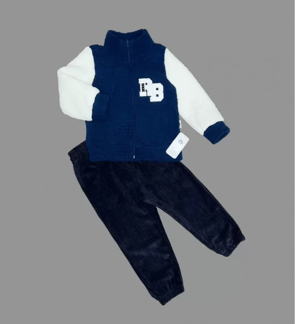 1-2-3 Yaş Kuzu Kumaş Fermuarlı Sweat Kadife Pantolonlu Uzun Kollu Kız Erkek Çocuk 2li Takım Lacivert