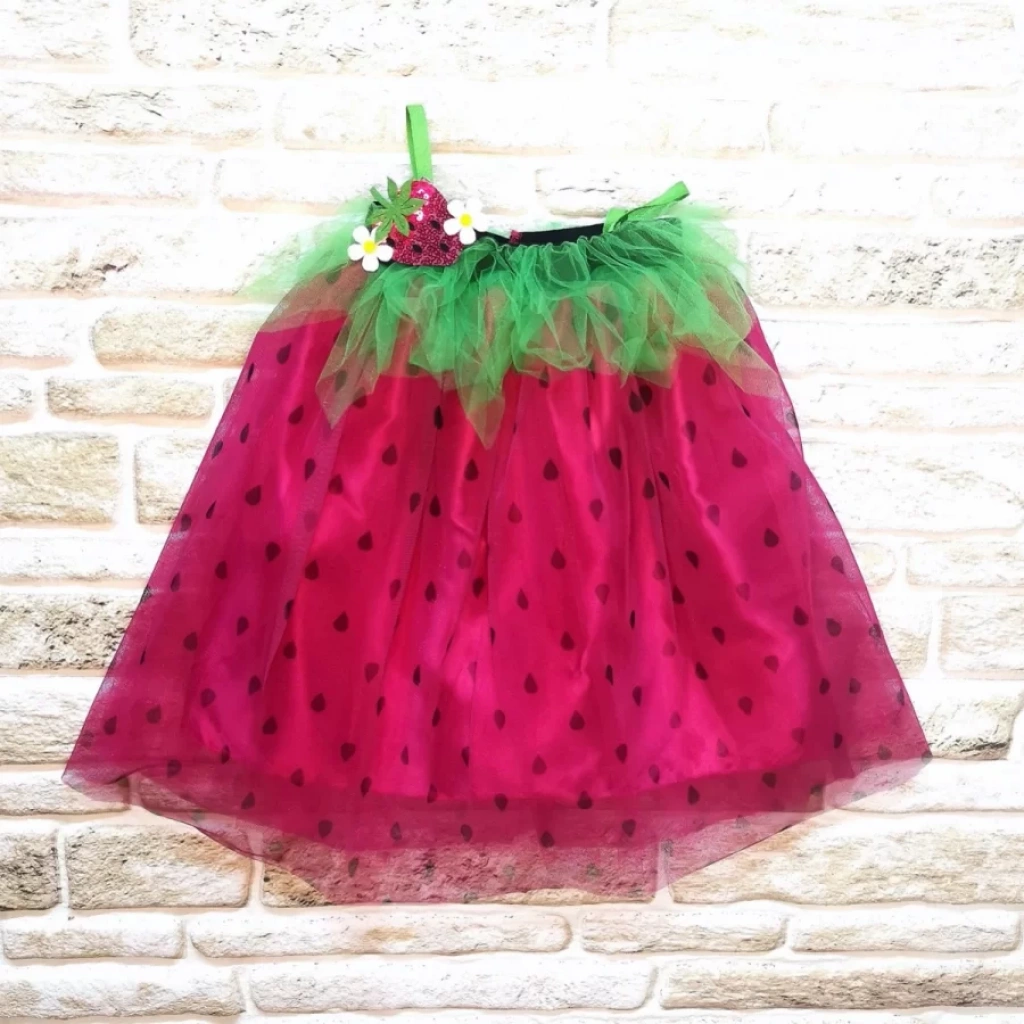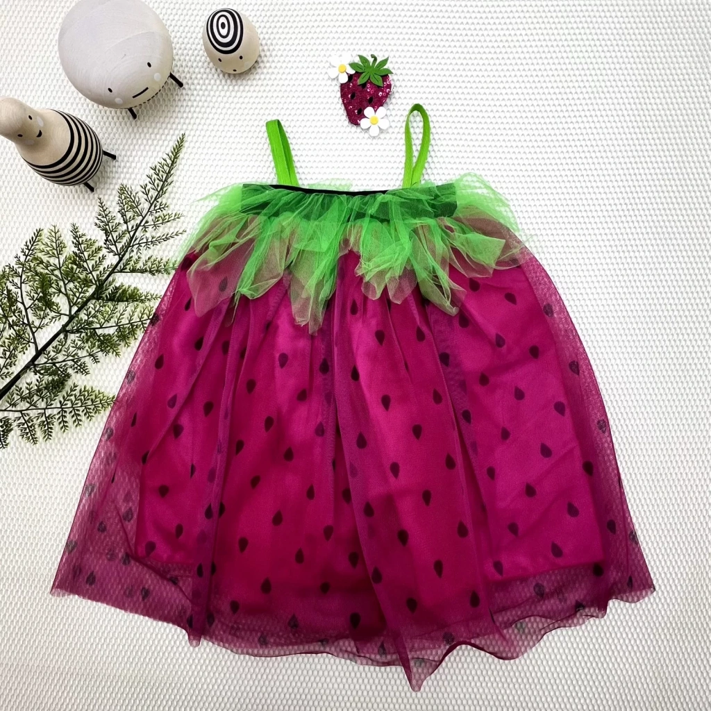 2-3-4 Yaş Askılı Çilek Kostüm Kız Çocuk Elbise Fuşya