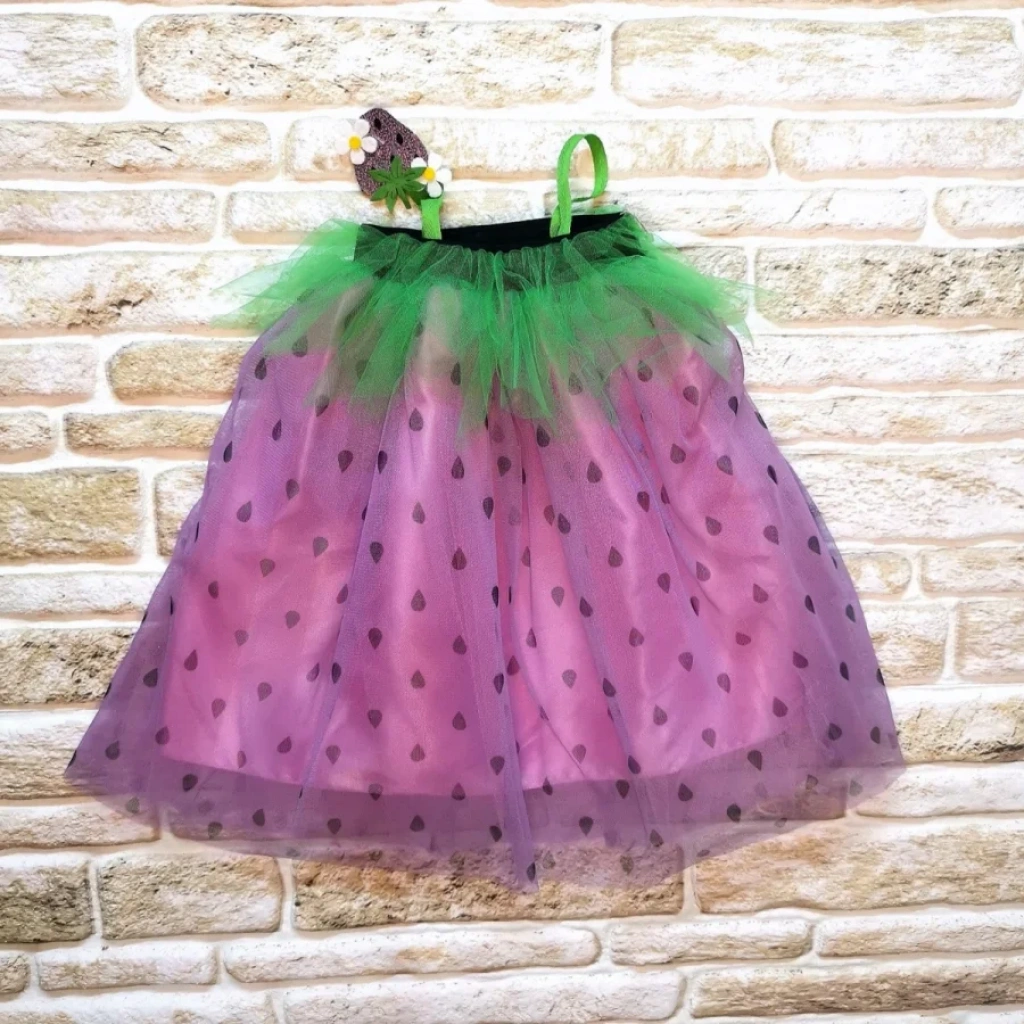 2-3-4 Yaş Askılı Çilek Kostüm Kız Çocuk Elbise Mor
