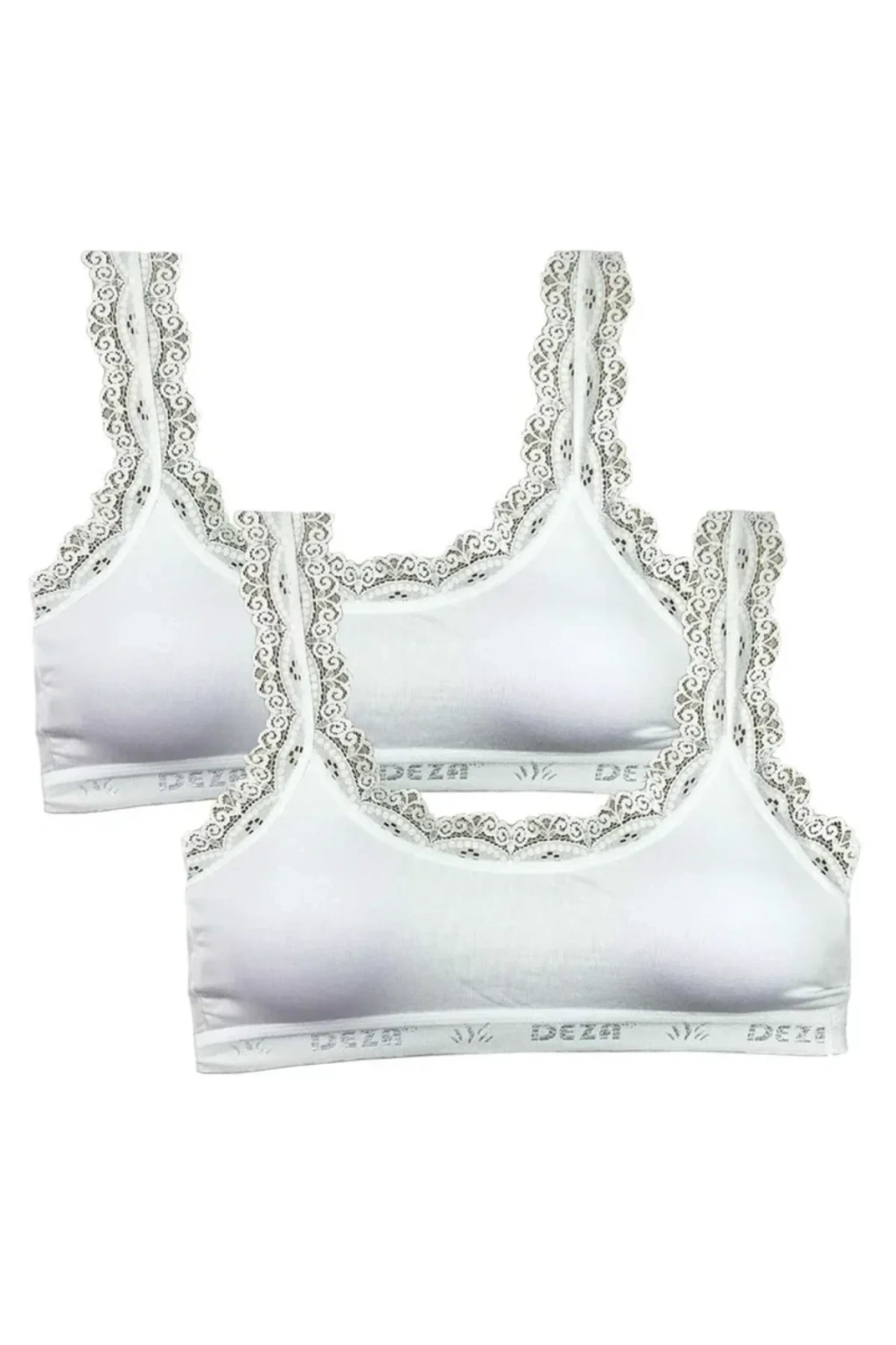 2 Adet Dantel Nakış İşlemeli Pedli Bambu Kadın Büstiyer Beyaz
