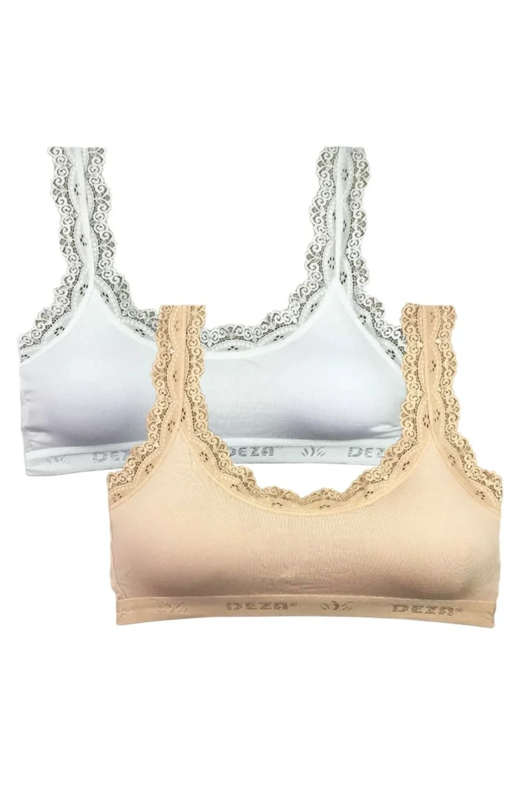 2 Adet Dantel Nakış İşlemeli Pedli Bambu Kadın Büstiyer Ten Krem