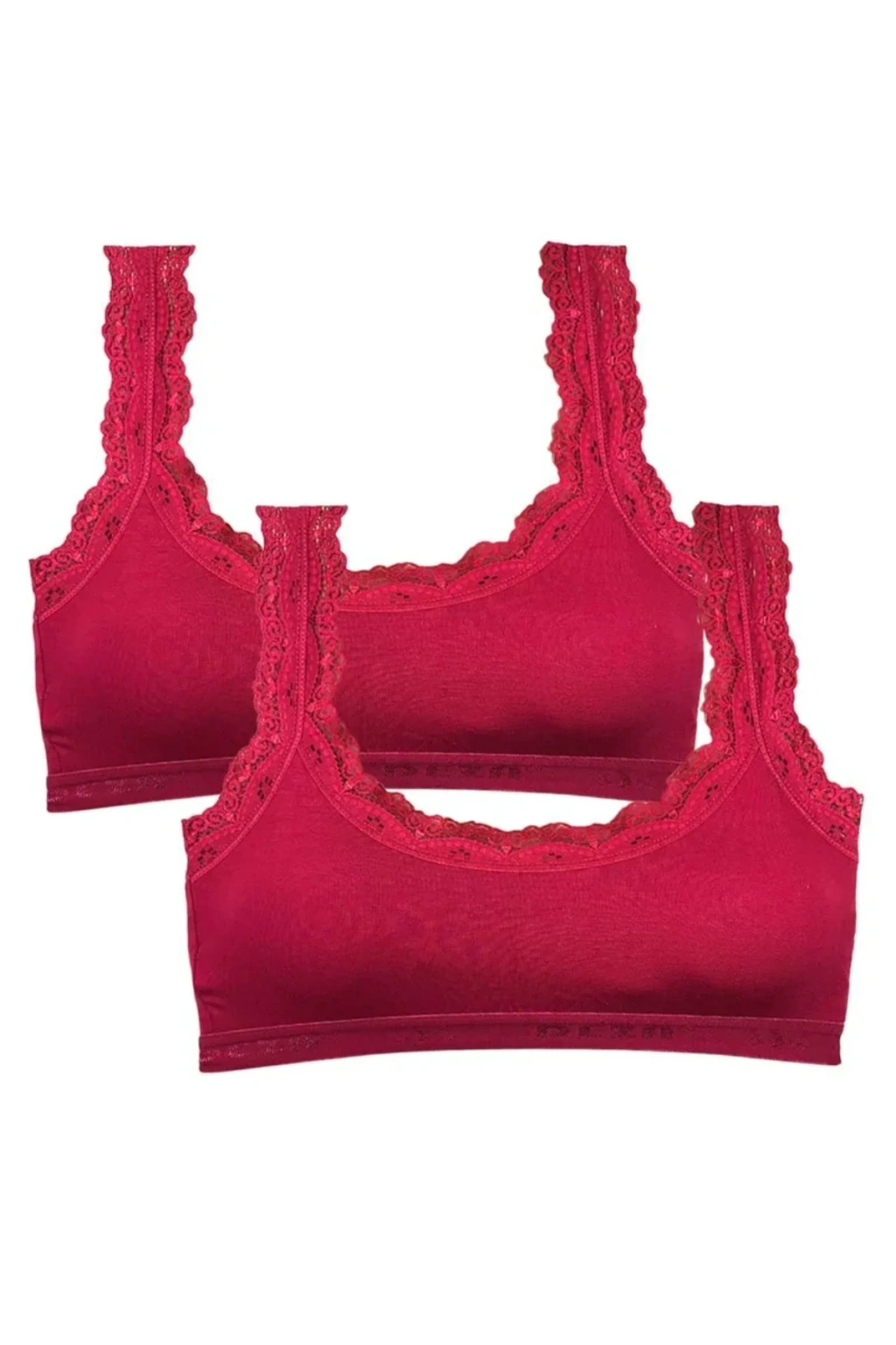 2 Adet Dantel Nakış İşlemeli Pedli Bambu Kadın Büstiyer Bordo