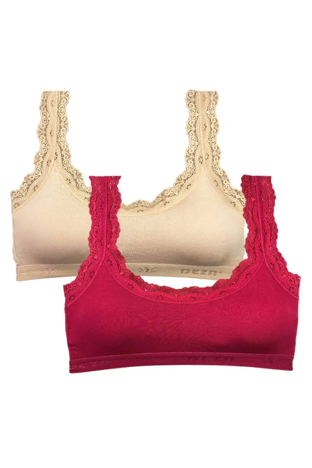 2 Adet Dantel Nakış İşlemeli Pedli Bambu Kadın Büstiyer Krem Bordo