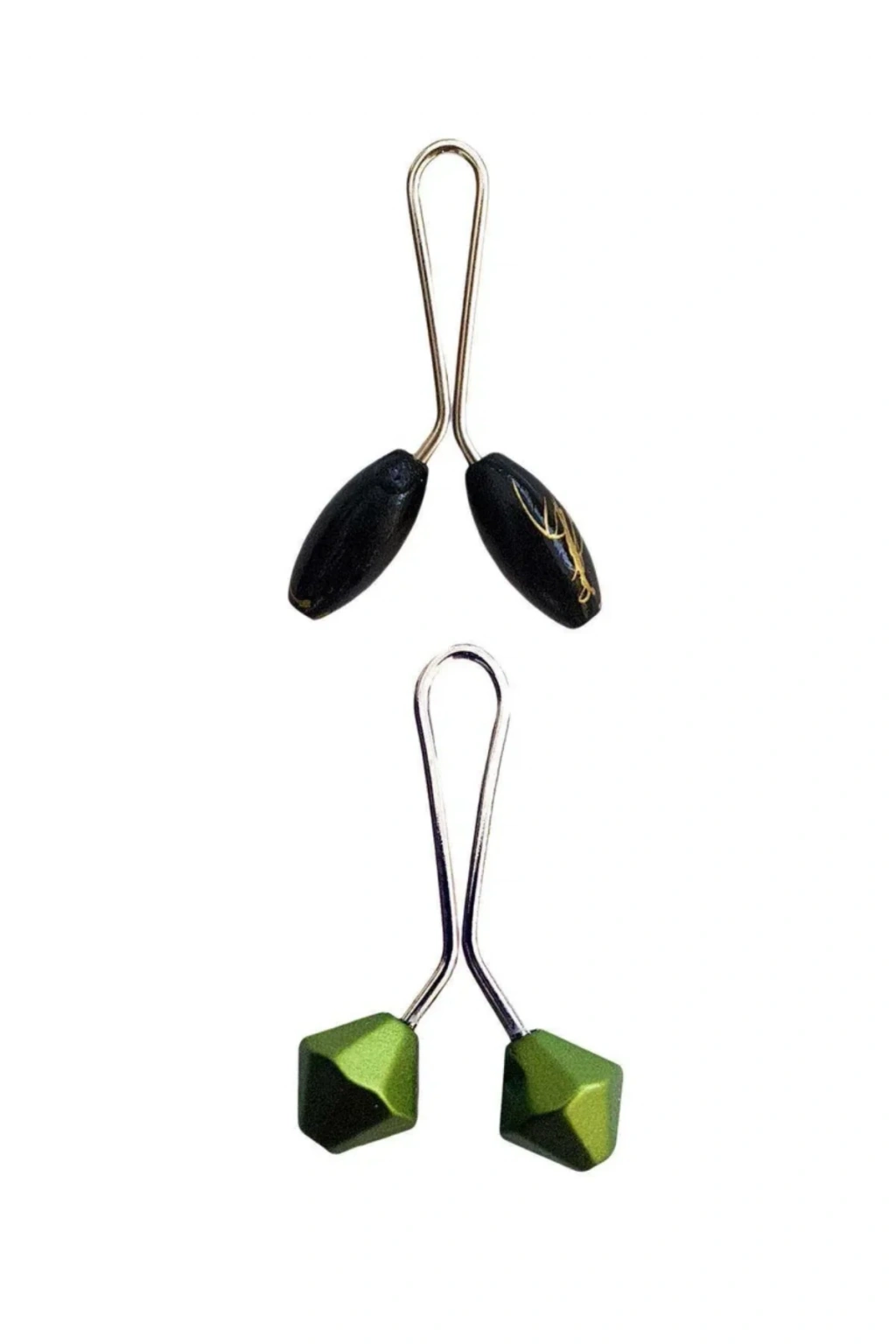 3 Adet Tesettür Eşarp ve Şal Klipsi Siyah Siyah Desenl Yeşil