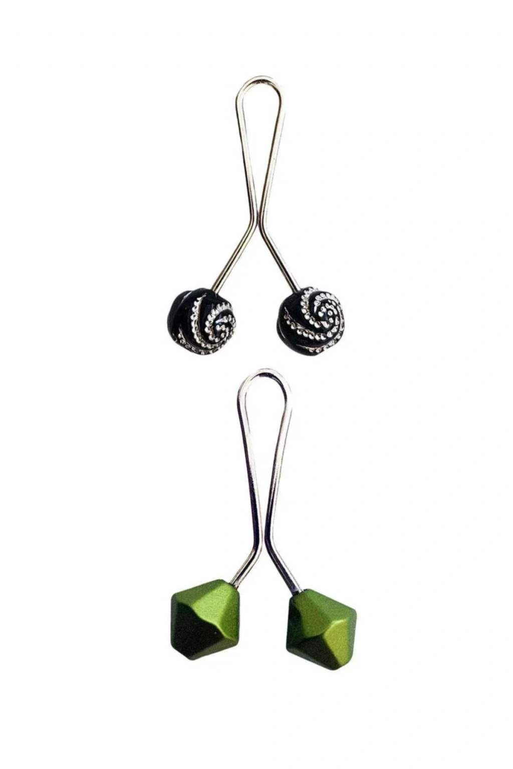 3 Adet Tesettür Eşarp ve Şal Klipsi Siyah Siyah Desenl Yeşil