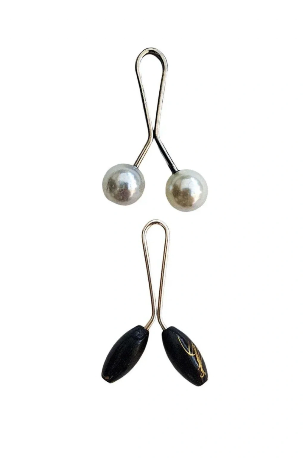 3 Adet Tesettür Eşarp ve Şal Klipsi İnci Beyaz Siyah Siyah Desenli