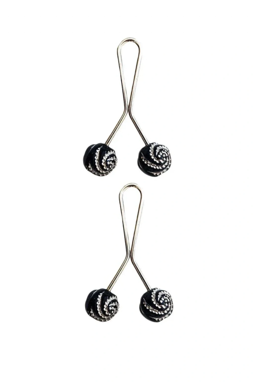 2 Adet Tesettür Eşarp ve Şal Klipsi Siyah Desenli