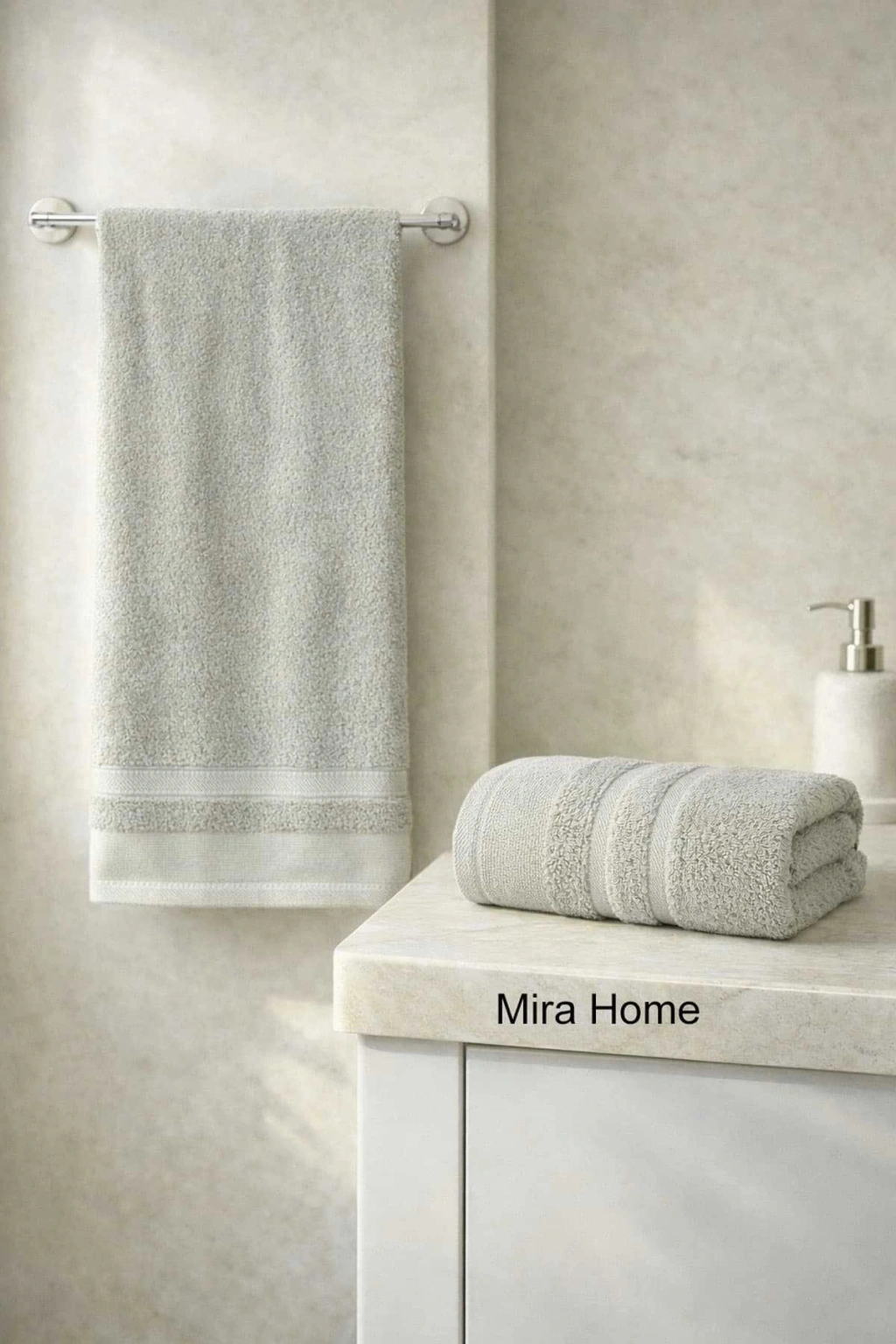 2 Parça Pamuklu Banyo Havlu Seti Ayla Gri