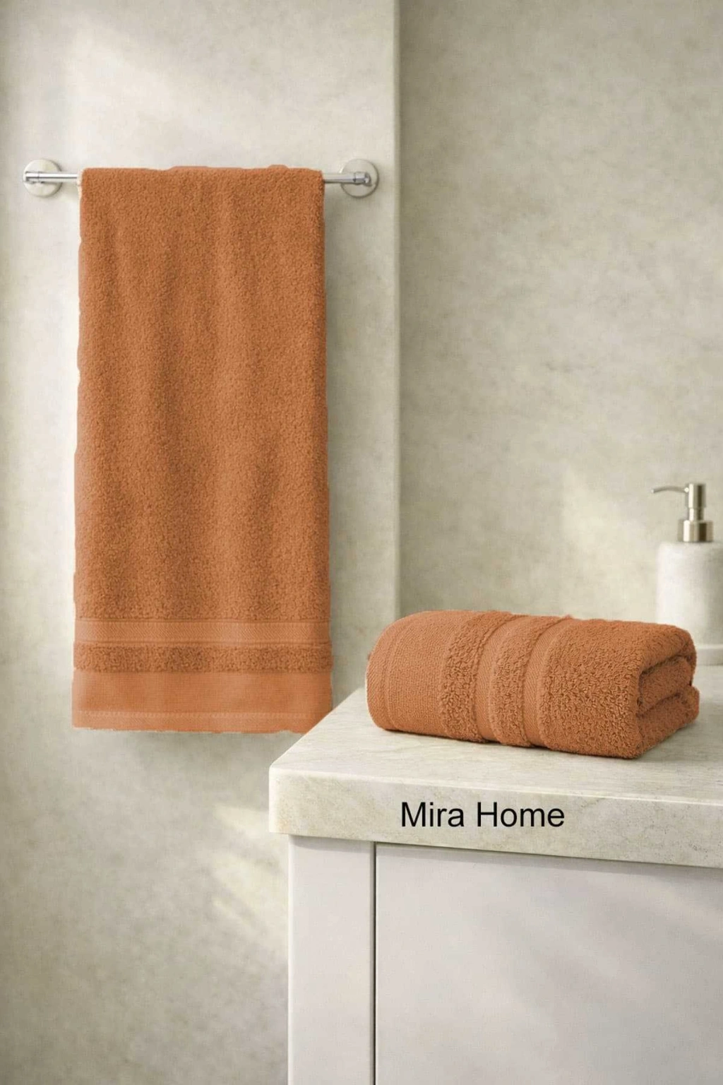 2 Parça Pamuklu Banyo Havlu Seti Ayla Kiremit