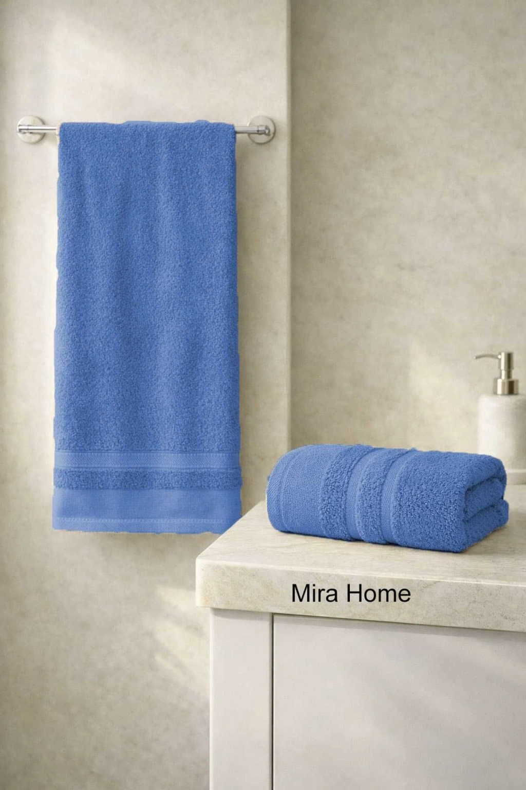 2 Parça Pamuklu Banyo Havlu Seti Ayla Mavi
