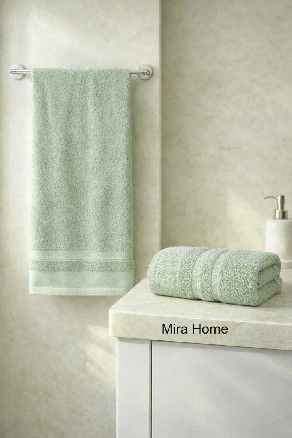 2 Parça Pamuklu Banyo Havlu Seti Ayla Yeşil