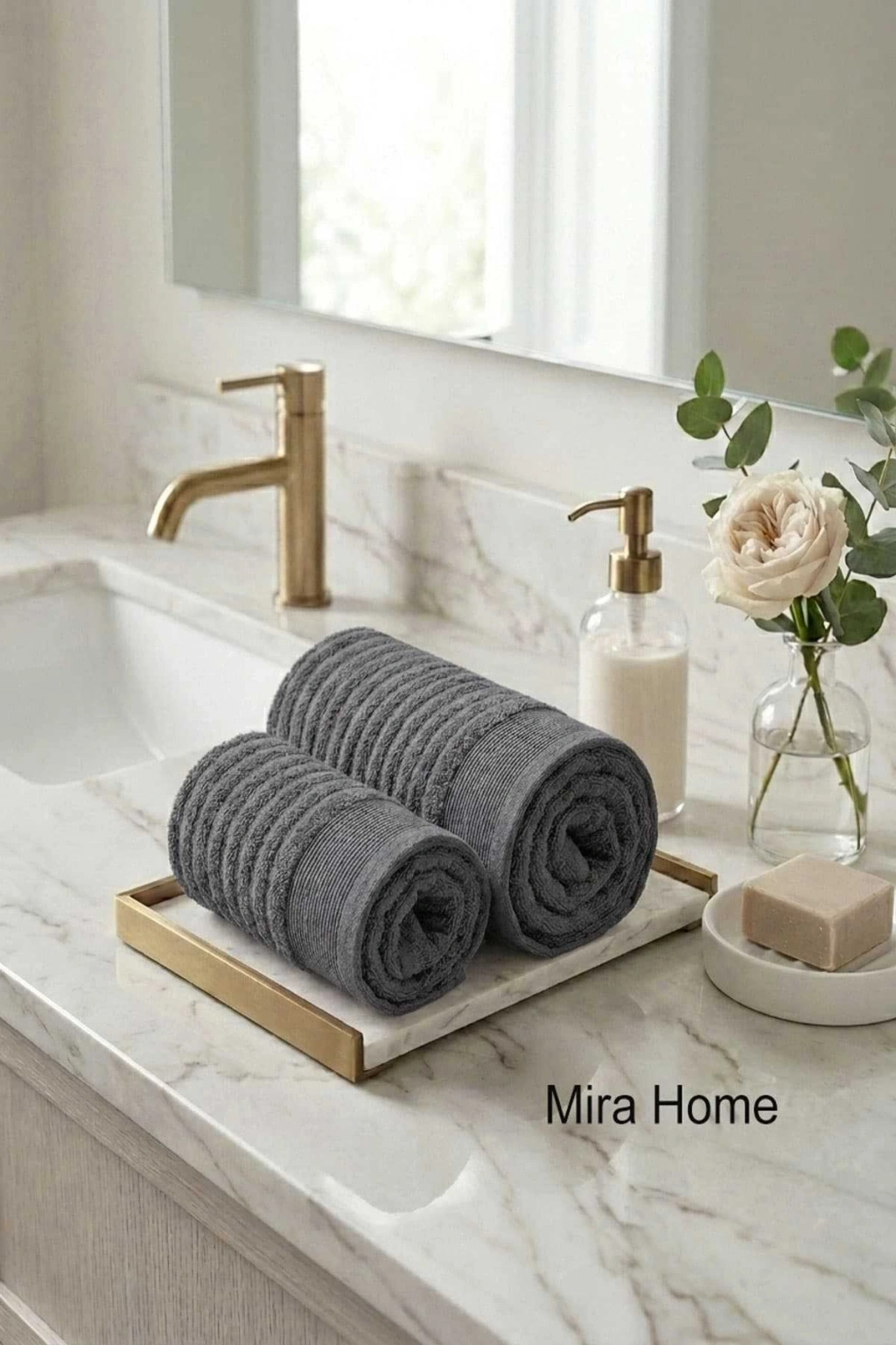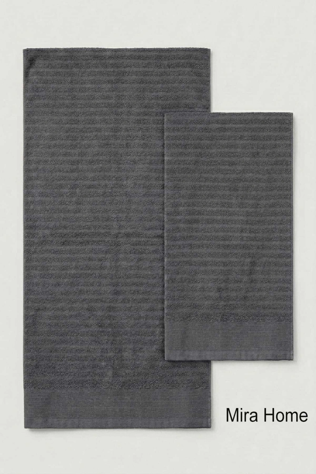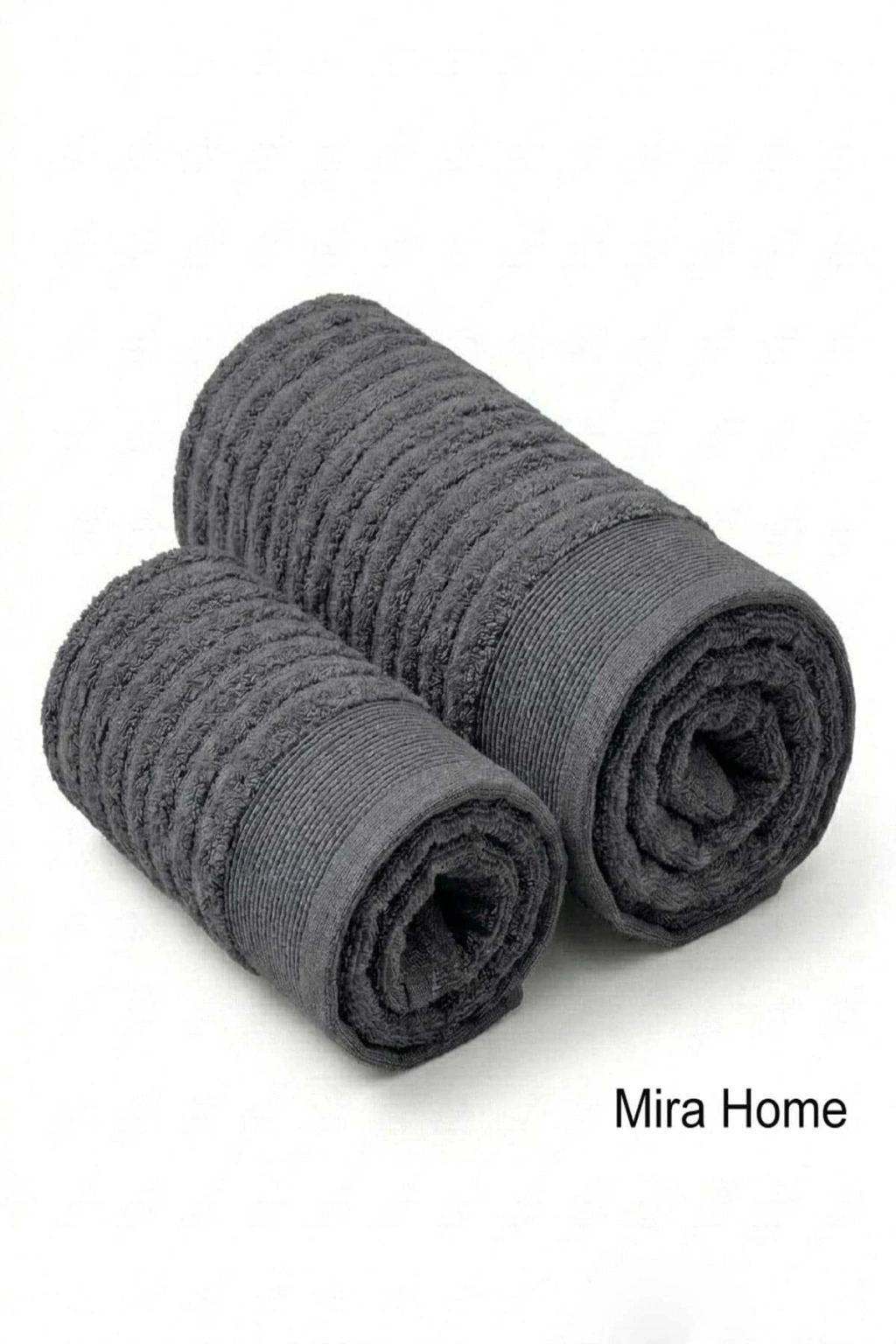 2 Parça Pamuklu Banyo ve El Yüz Havlu Seti Şeyda Antrasit
