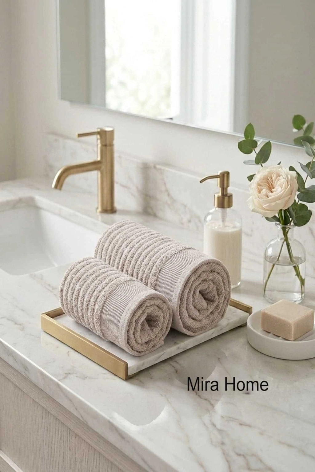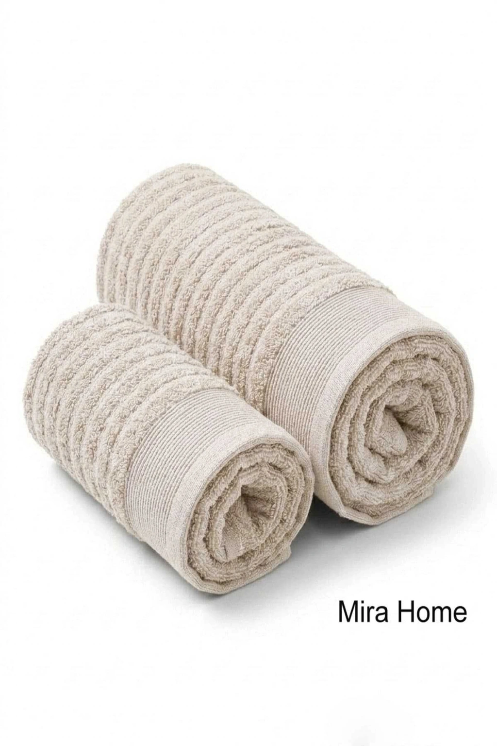 2 Parça Pamuklu Banyo Havlu Seti Ayla Bej