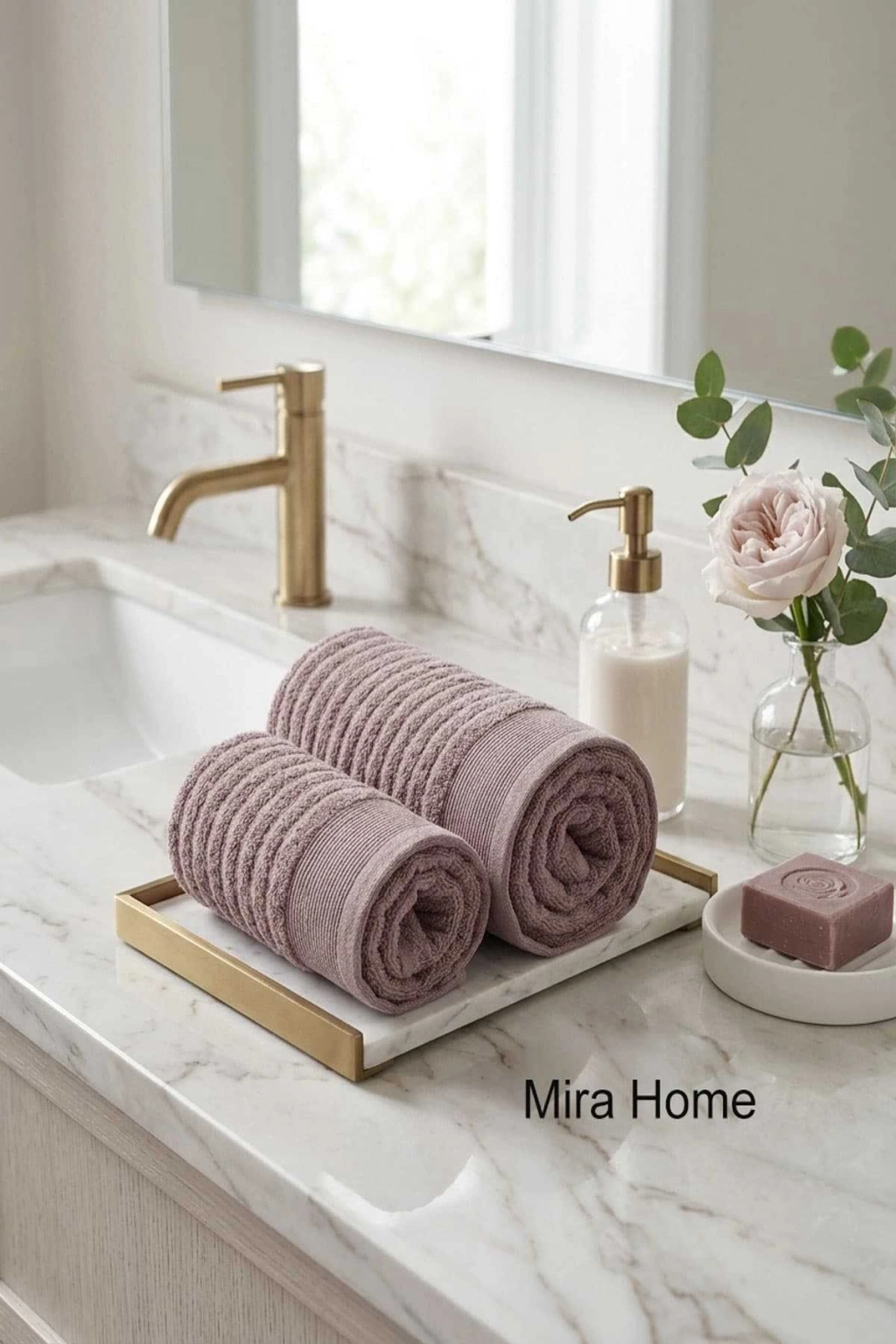 2 Parça Pamuklu Banyo ve El Yüz Havlu Seti Şeyda Mürdüm