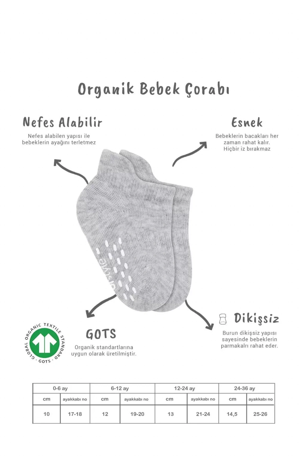 Bistil Organik Kız Erkek Bebek Dikişsiz Basic Kaymaz Altı Taban Kaymaz Kaydırmaz Sneakers Patik Çorap Renkli Kokulu Pamuklu Yumuşak Antialerjik