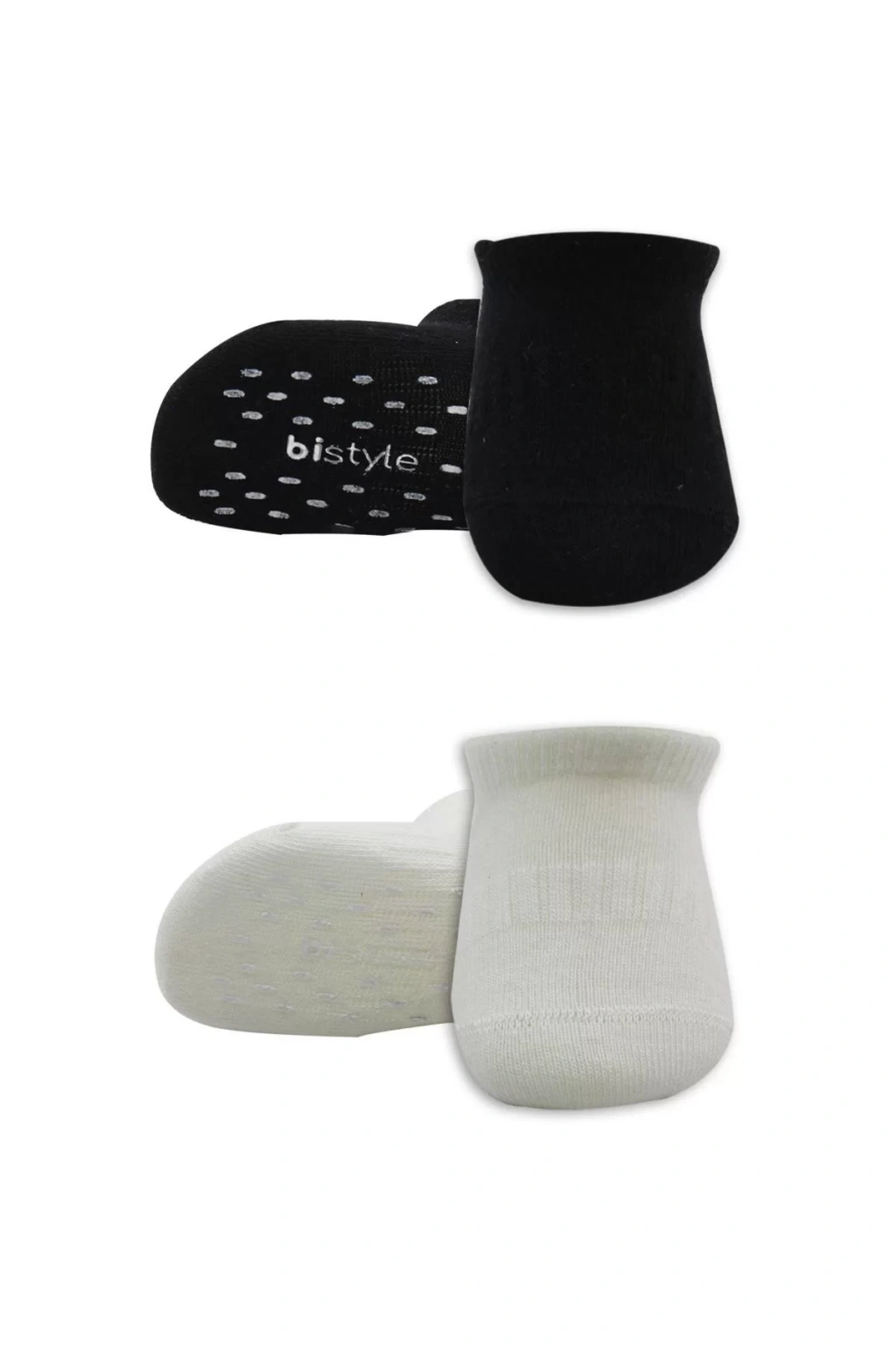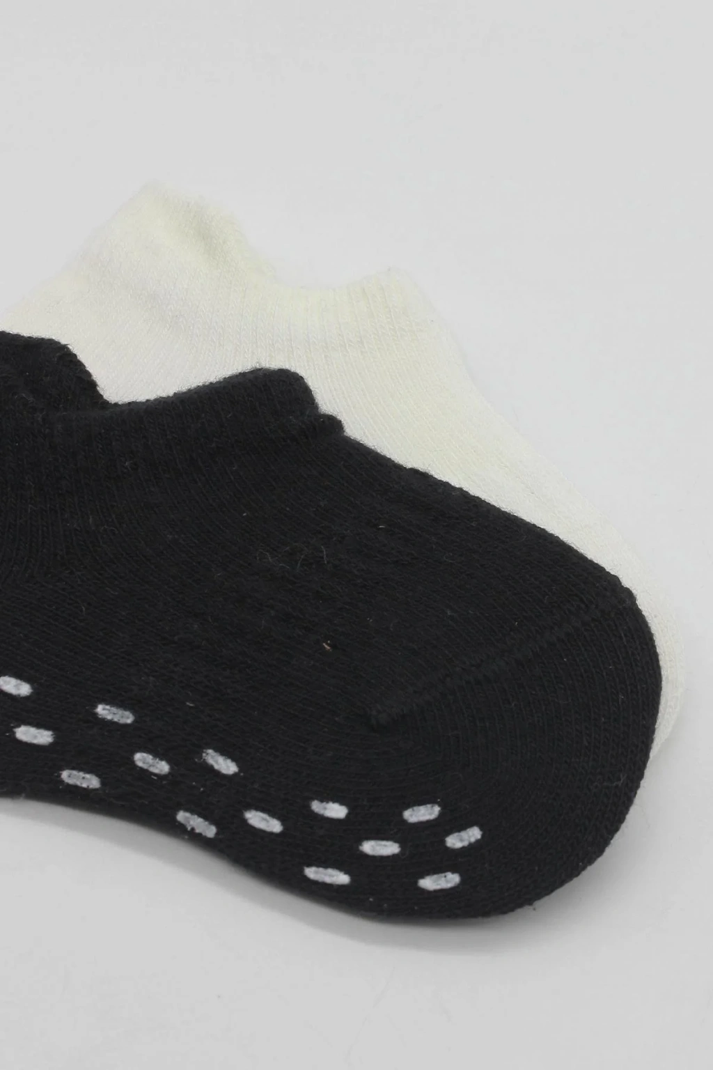 2'li Sneakers Kaymaz Basic Penye Çorap Bs20103 Siyah Ekru