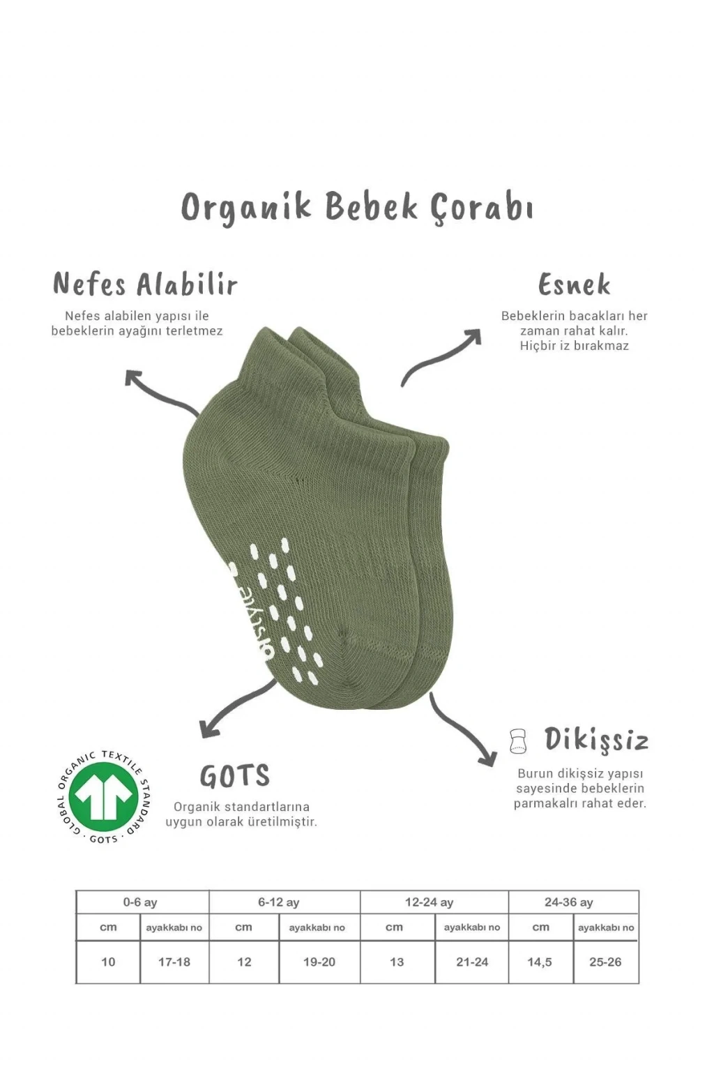 Bistil Organik Kız Erkek Bebek Dikişsiz Basic Kaymaz Altı Taban Kaymaz Kaydırmaz Sneakers Patik Çorap Renkli Kokulu Pamuklu Yumuşak Antialerjik