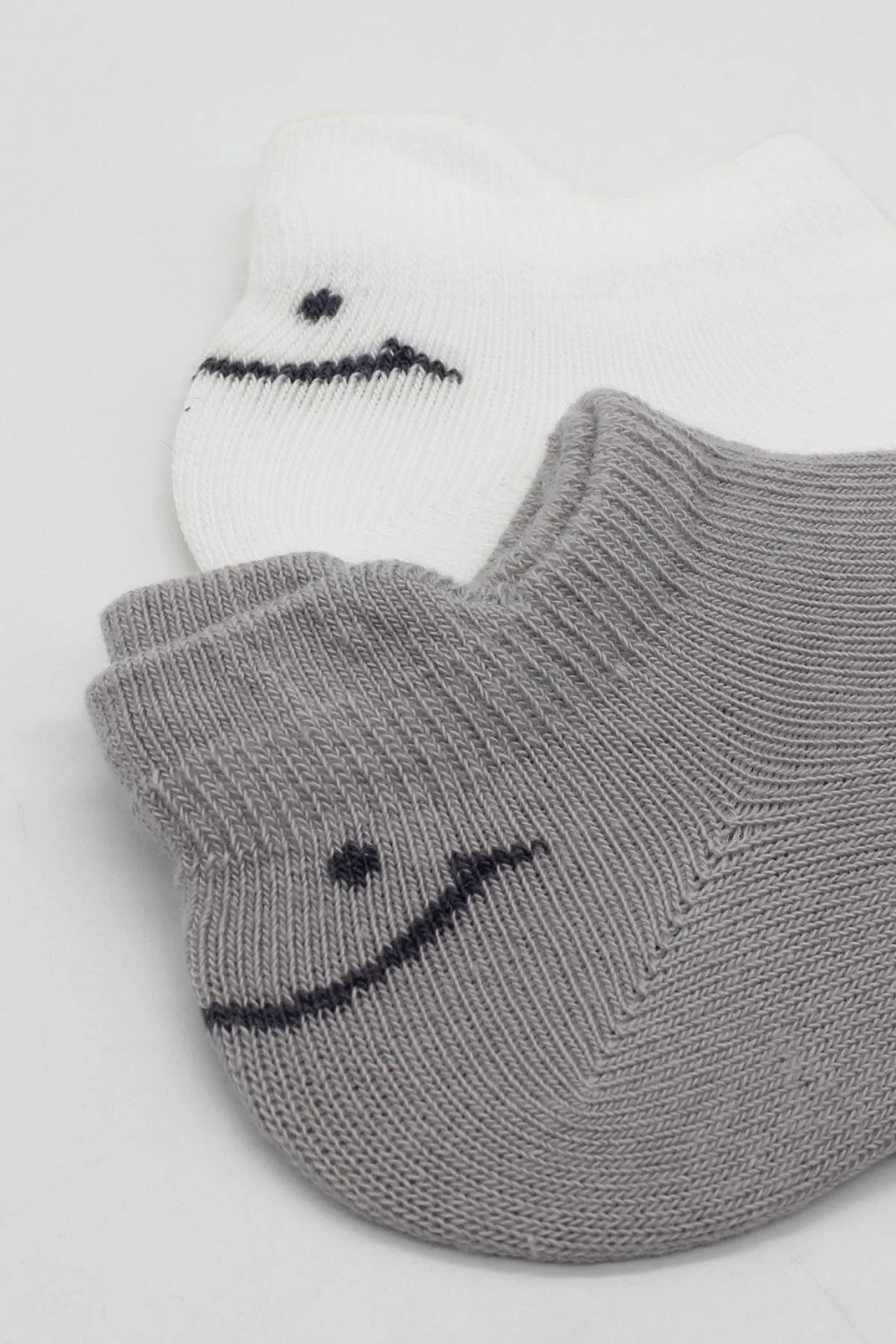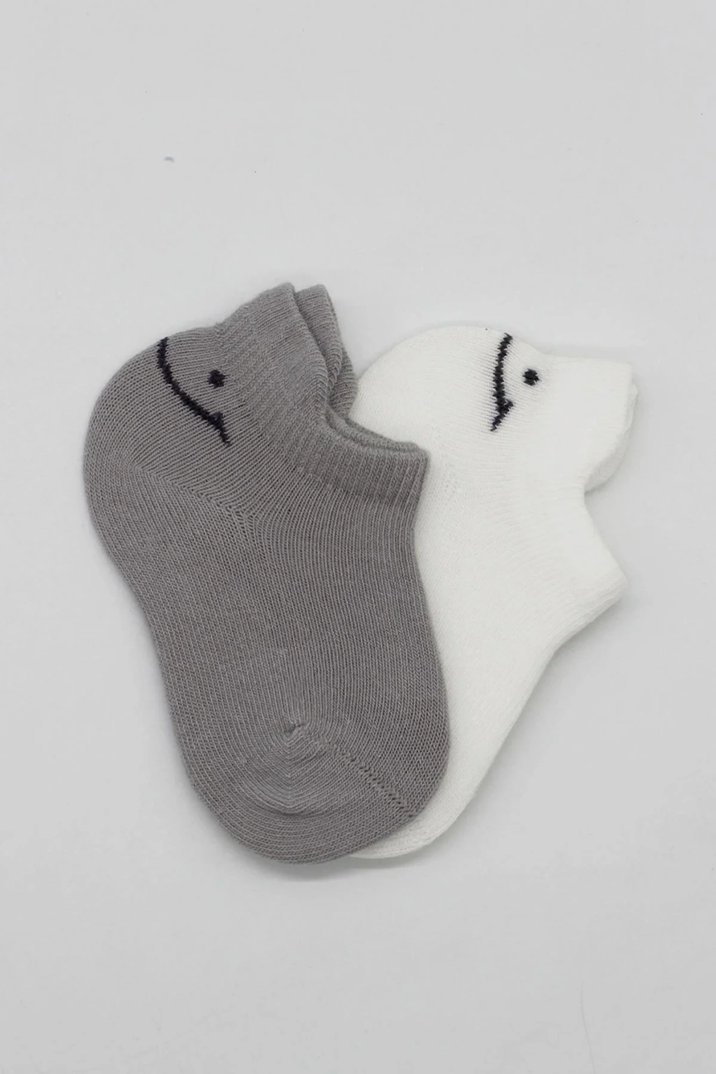 2'li Sneakers Smile Penye Çorap Bs20106 Gri Ekru