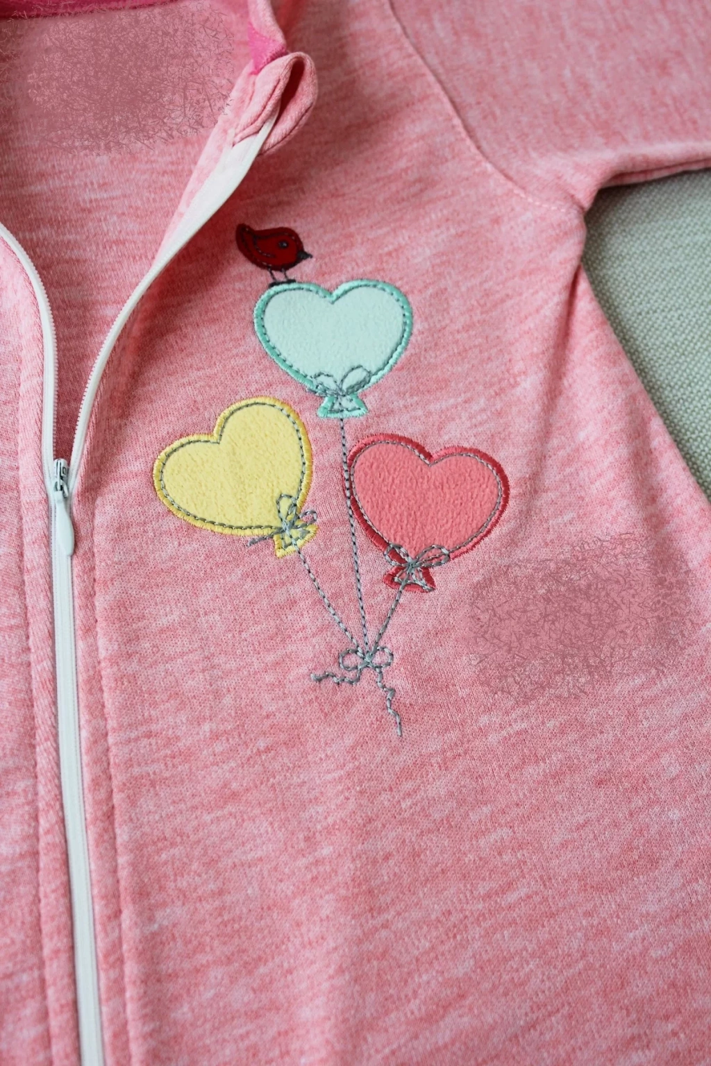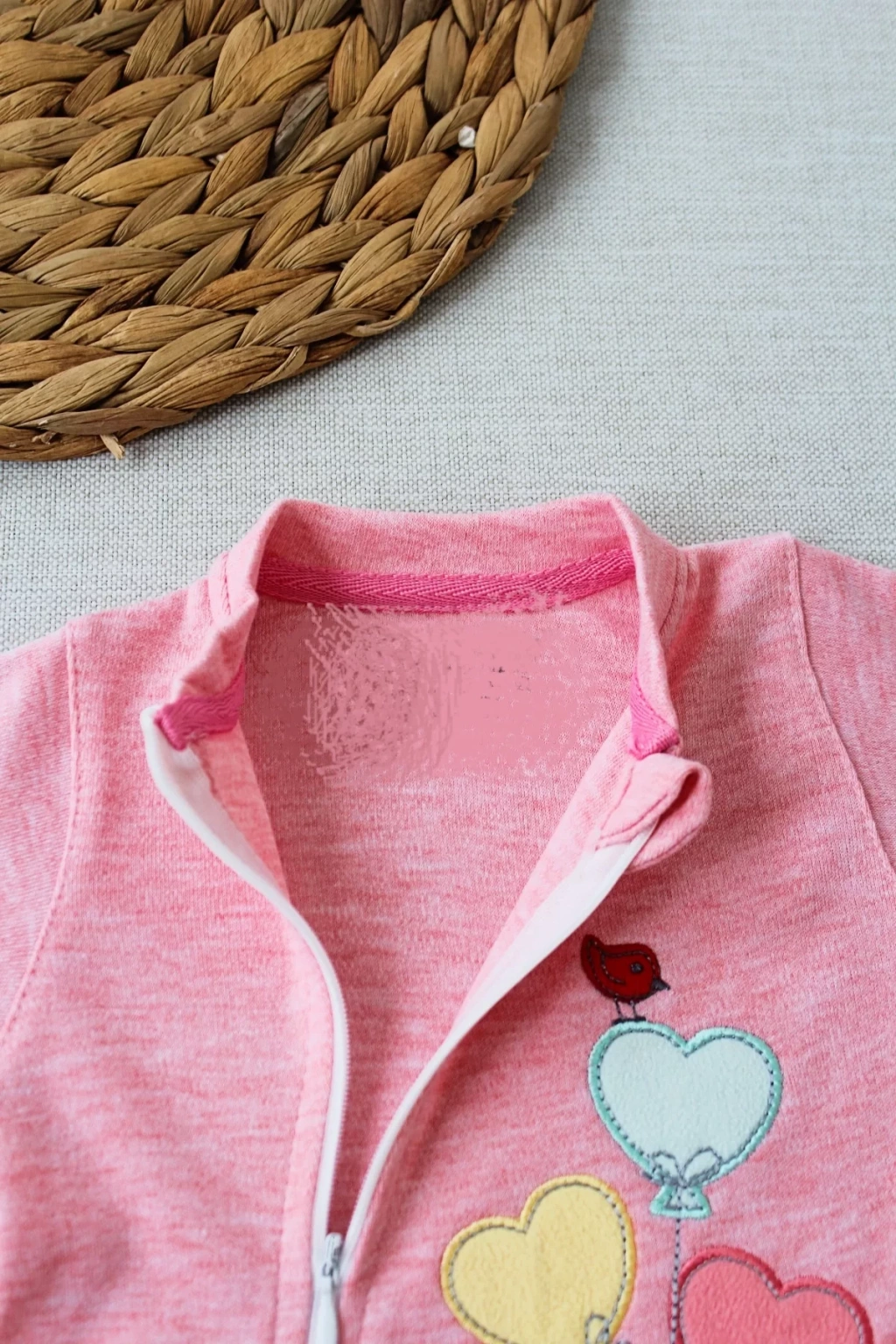 3-6 18-24 24-36 Ay Uçan Balonlar Nakışlı Ef Boy Fermuarlı Kız Bebek Tulumu Pembe