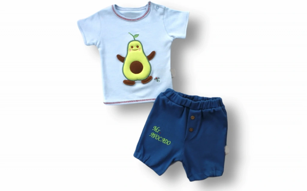 3-6 6-9 9-12 12-18 Ay Avokado Nakışlı Kısa Kollu Sweatli Şortlu 2li Kız-erkek Bebek Takımı Mavi