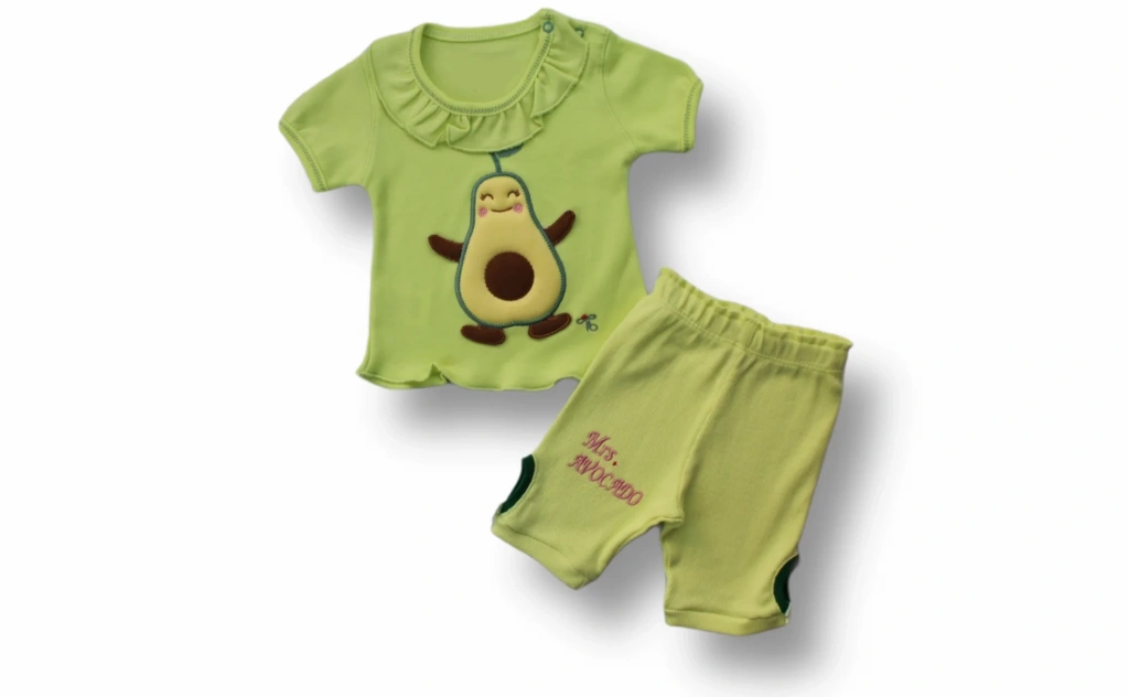 3-6 6-9 9-12 12-18 Ay Avokado Nakışlı Kısa Kollu Sweatli Şortlu 2li Kız-erkek Bebek Takımı Yeşil