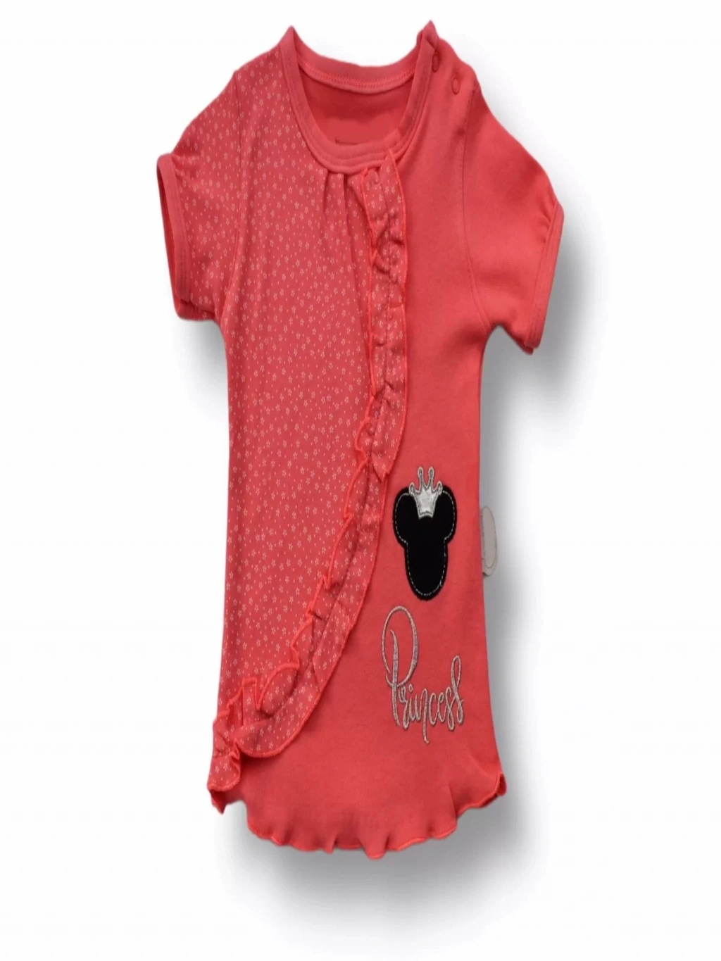 3-6 6-9 9-12 12-18 Ay Princess Taçlı Mickey Nakışlı Şort Tişört 3lü Kız Bebek Takımı Nar Çiçeği