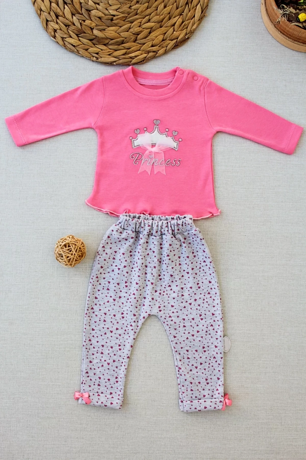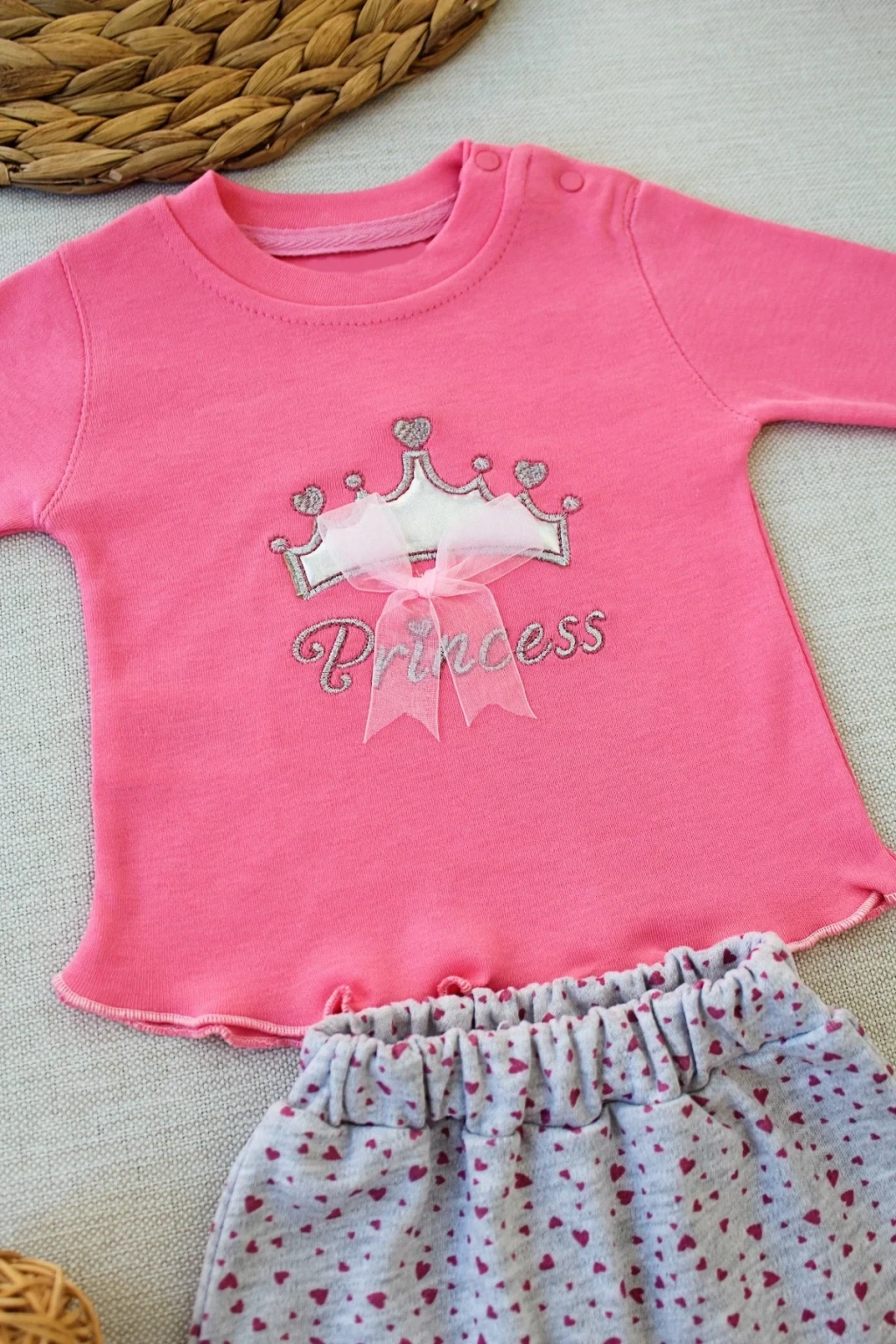 3-6 6-9 9-12 Ay Full Star Nakışlı Şapkalı Uzun Kollu Sweat 3lü Erkek Bebek Takımı Fuşya
