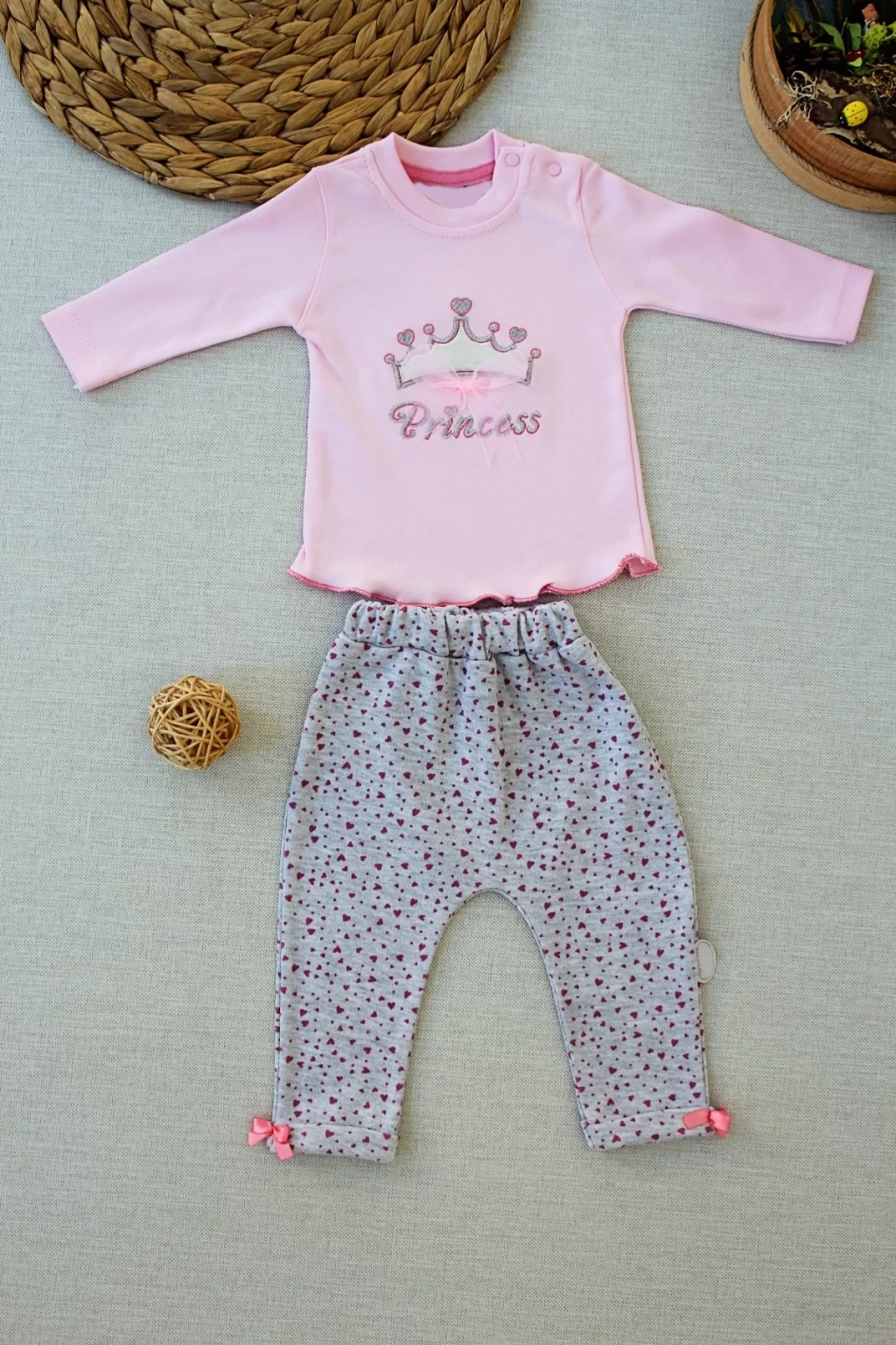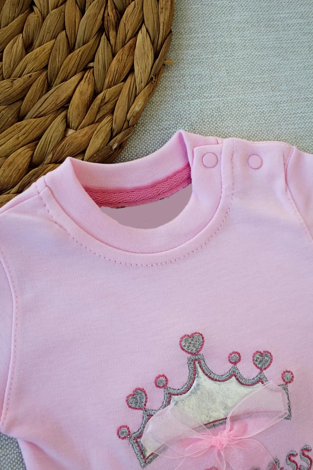 3-6 6-9 9-12 Ay Full Star Nakışlı Şapkalı Uzun Kollu Sweat 3lü Erkek Bebek Takımı Pembe