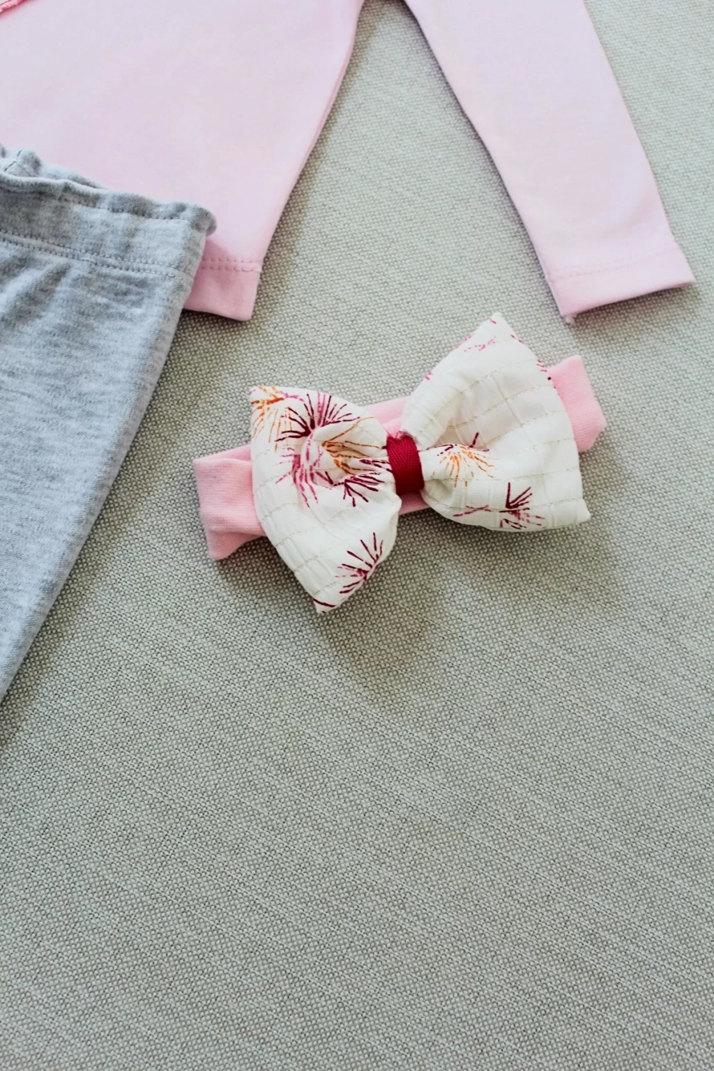 3-6 6-9 9-12 Ay Matmazel Yaka Fırfır Detaylı Bandanalı Uzun Kollu Sweat 3lü Kız Bebek Takımı Pembe