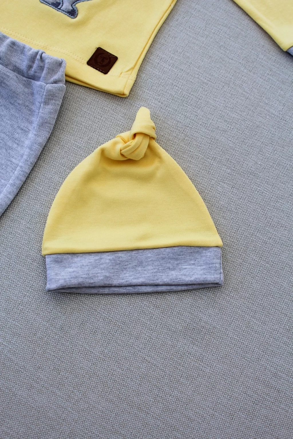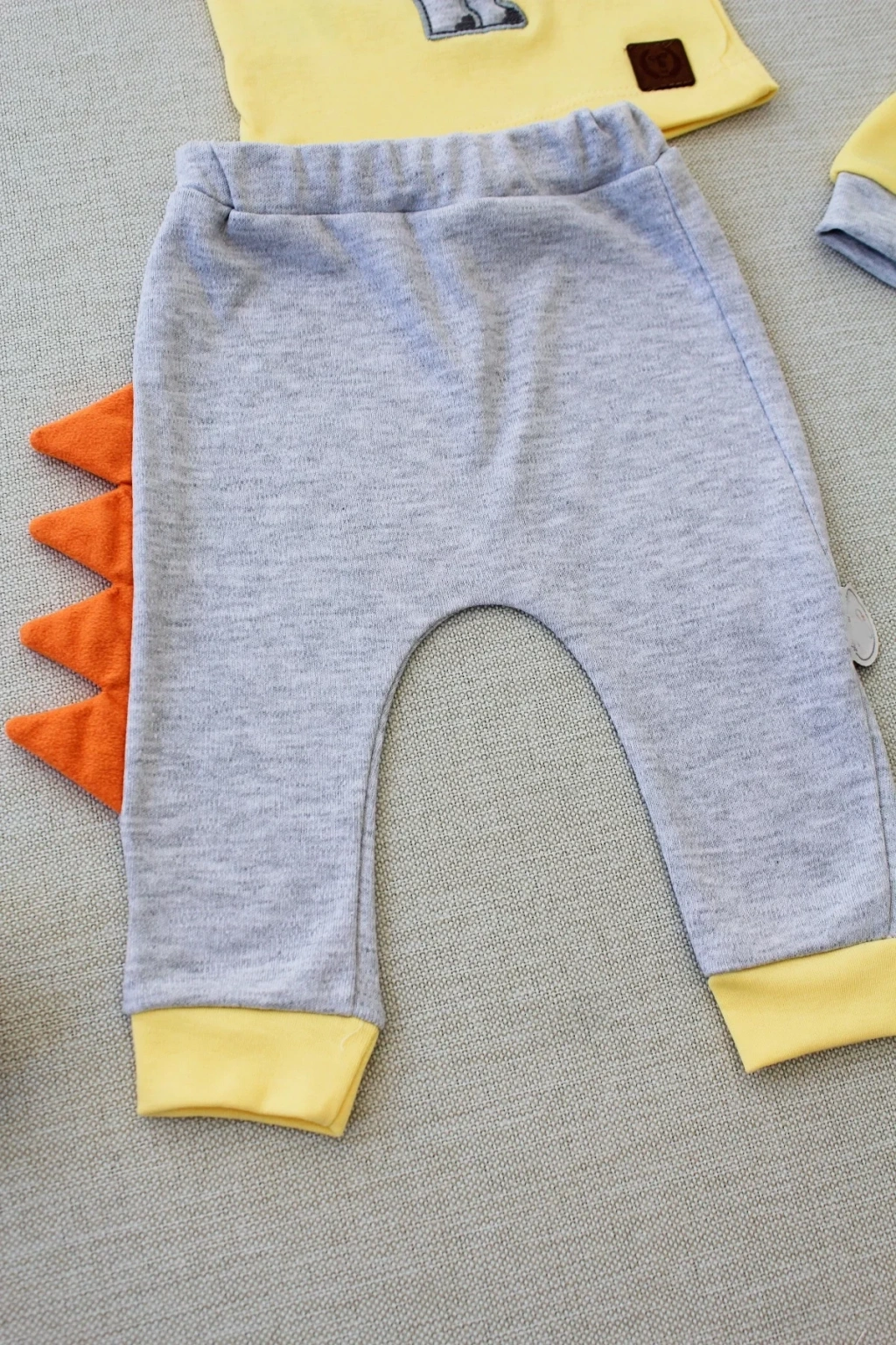3-6 6-9 9-12 Ay Minik Dino Nakışlı Şapkalı Uzun Kollu Sweat 3lü Kız-erkek Bebek Takımı Sarı