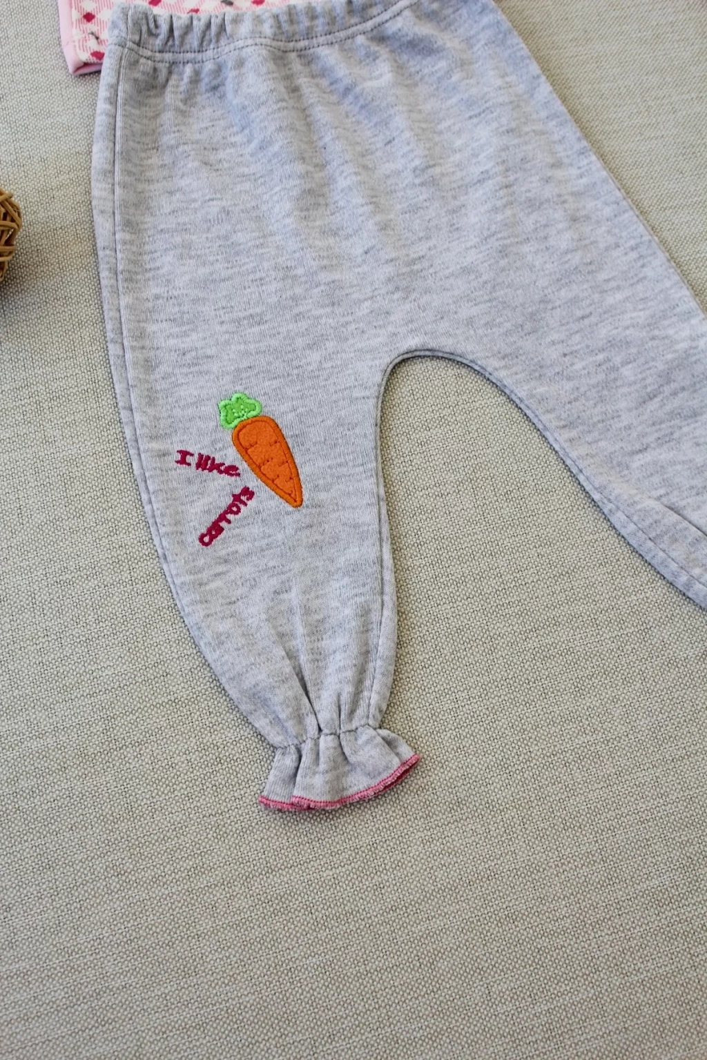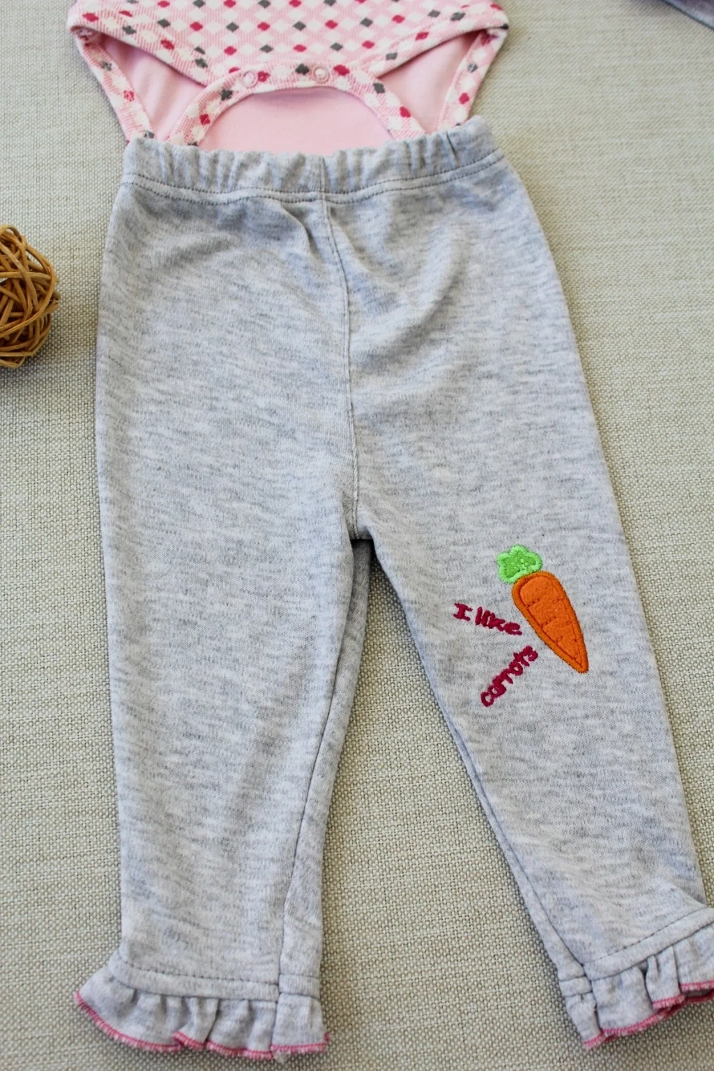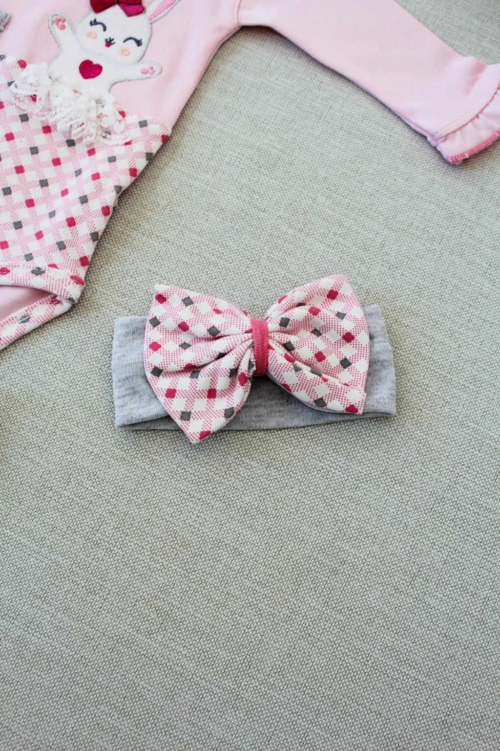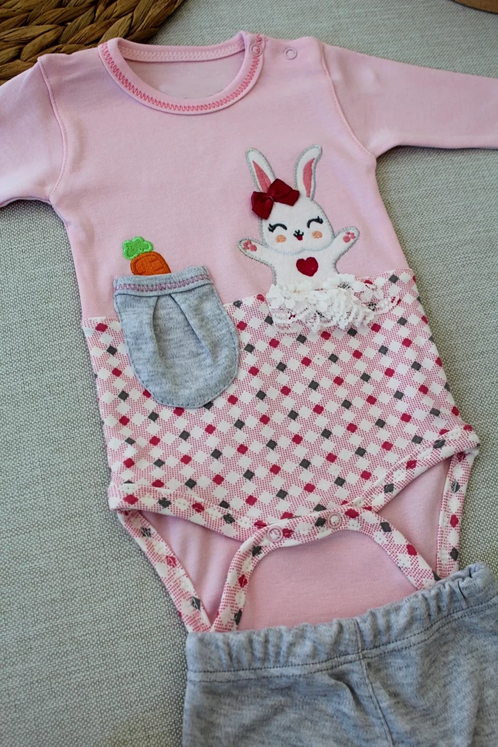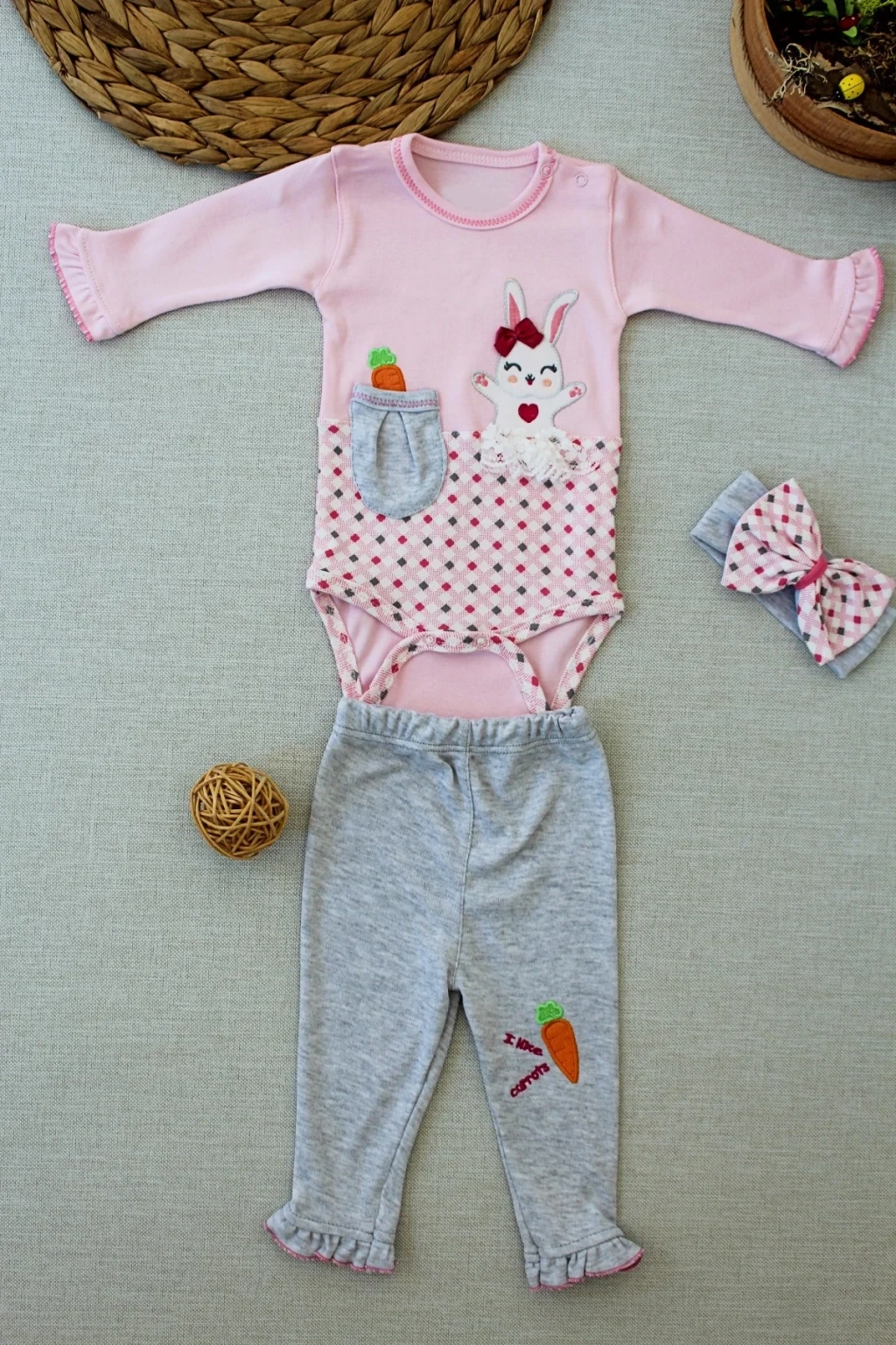 3-6 9-12 12-18 Ay Havuç Tavşan Nakışlı Bandanalı Uzun Kollu Zıbınlı 3lü Kız Bebek Tak Pembe
