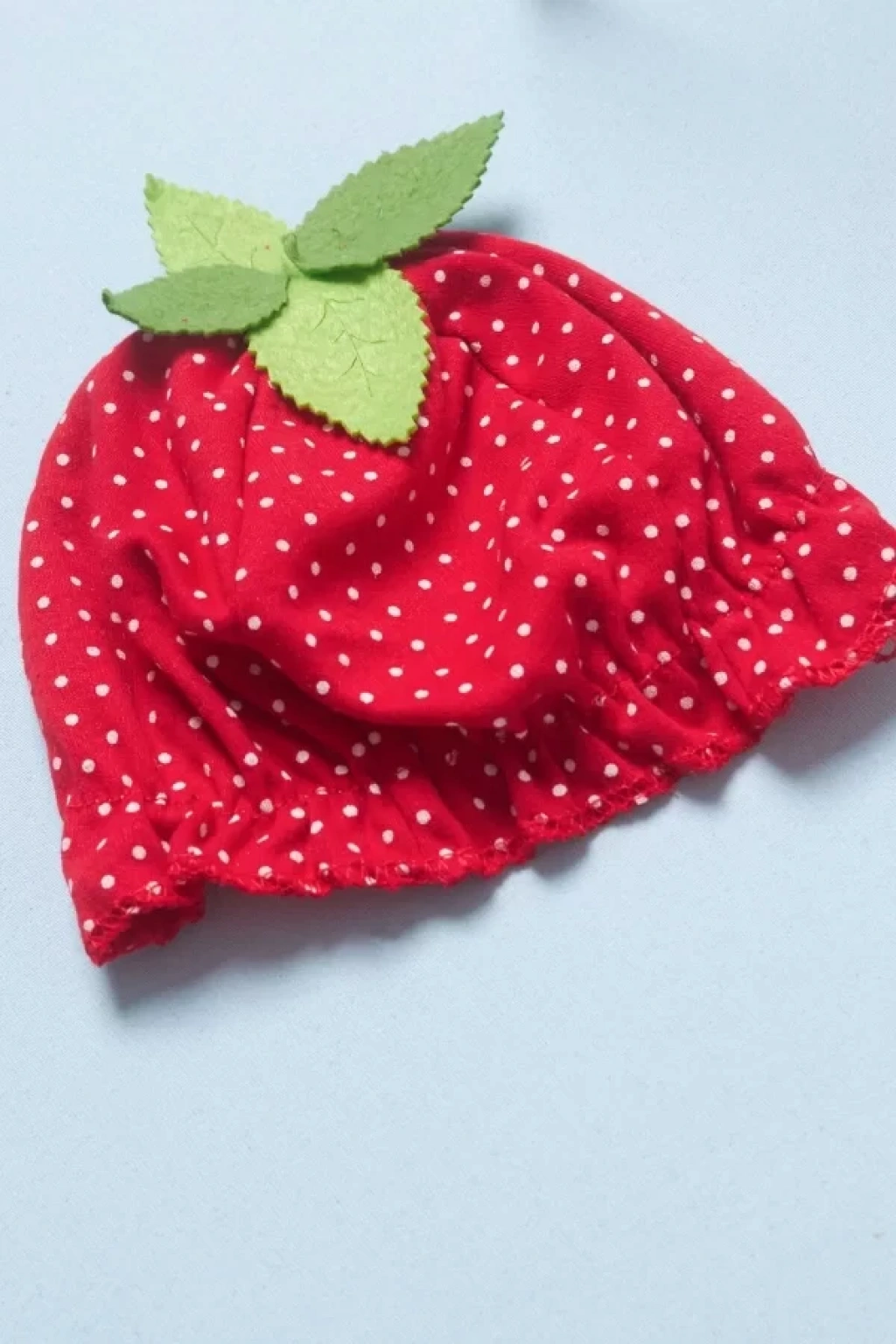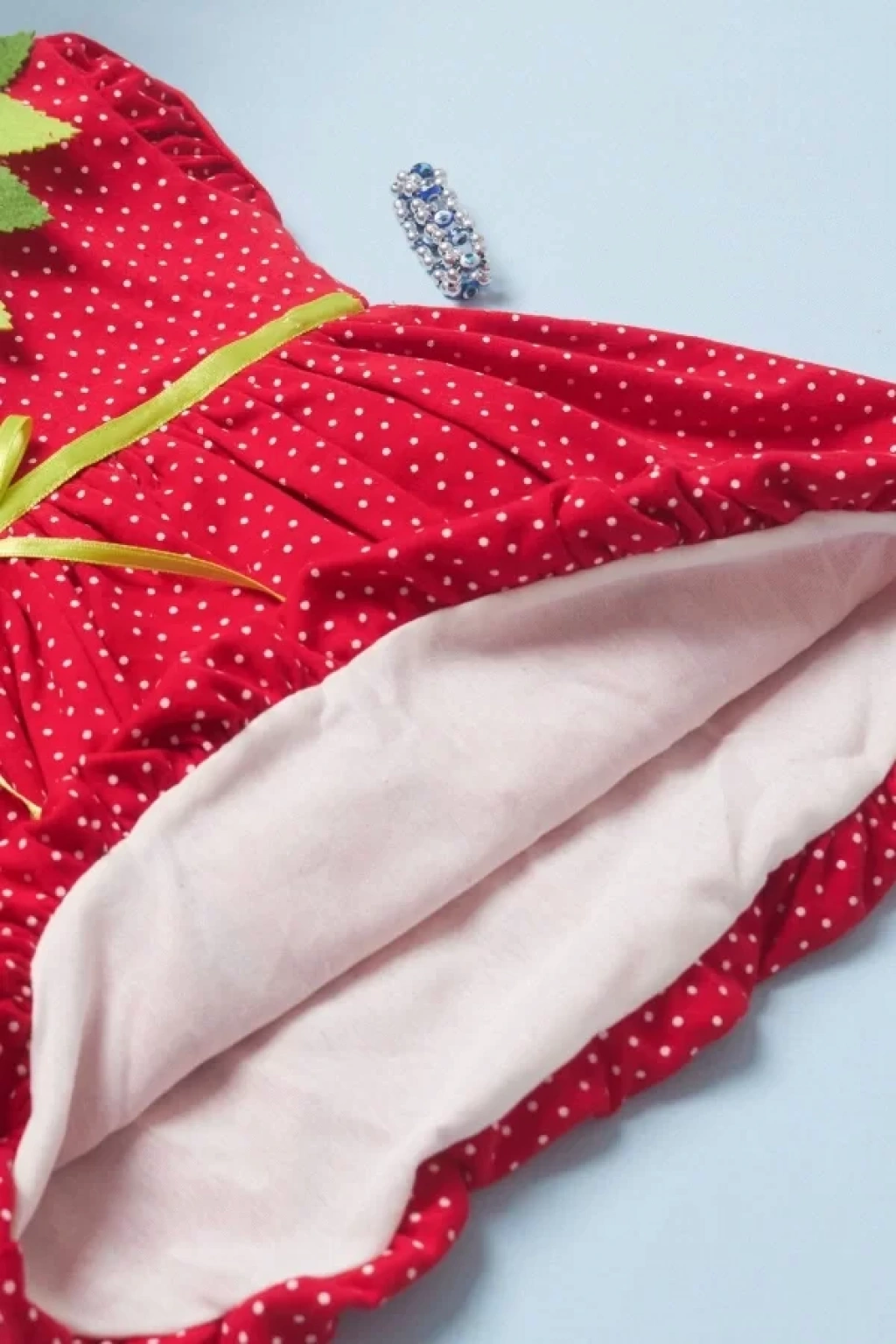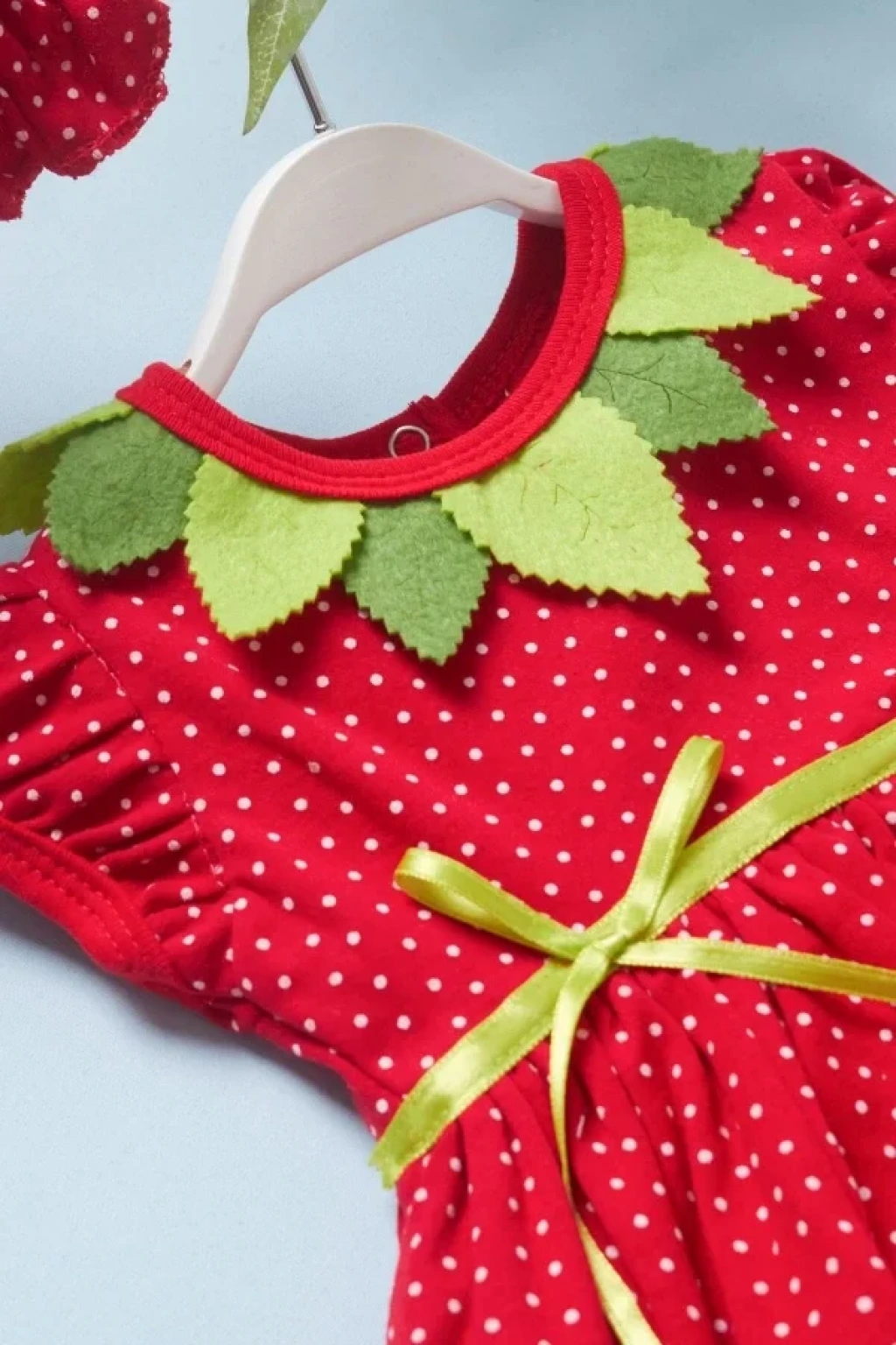 3-6-9 Ay Çilek Bebekler Penye Kumaş Kısa Kol Bebek Elbisesi Kırmızı