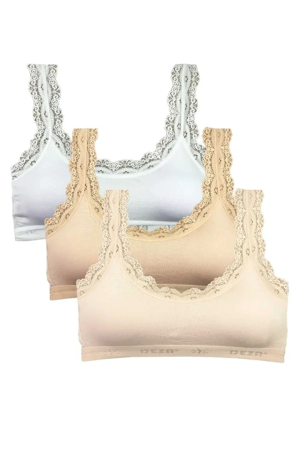 3 Adet Dantel Nakış İşlemeli Pedli Bambu Kadın Büstiyer Beyaz Ten Krem