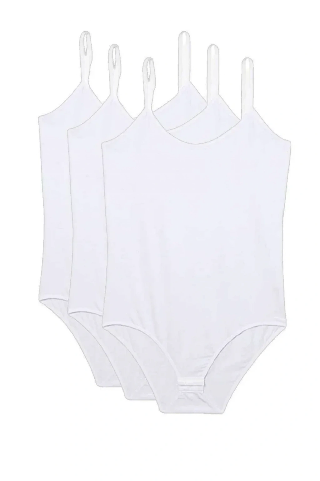 3 Adet İp Askılı Kadın Çıtçıtlı Body Beyaz