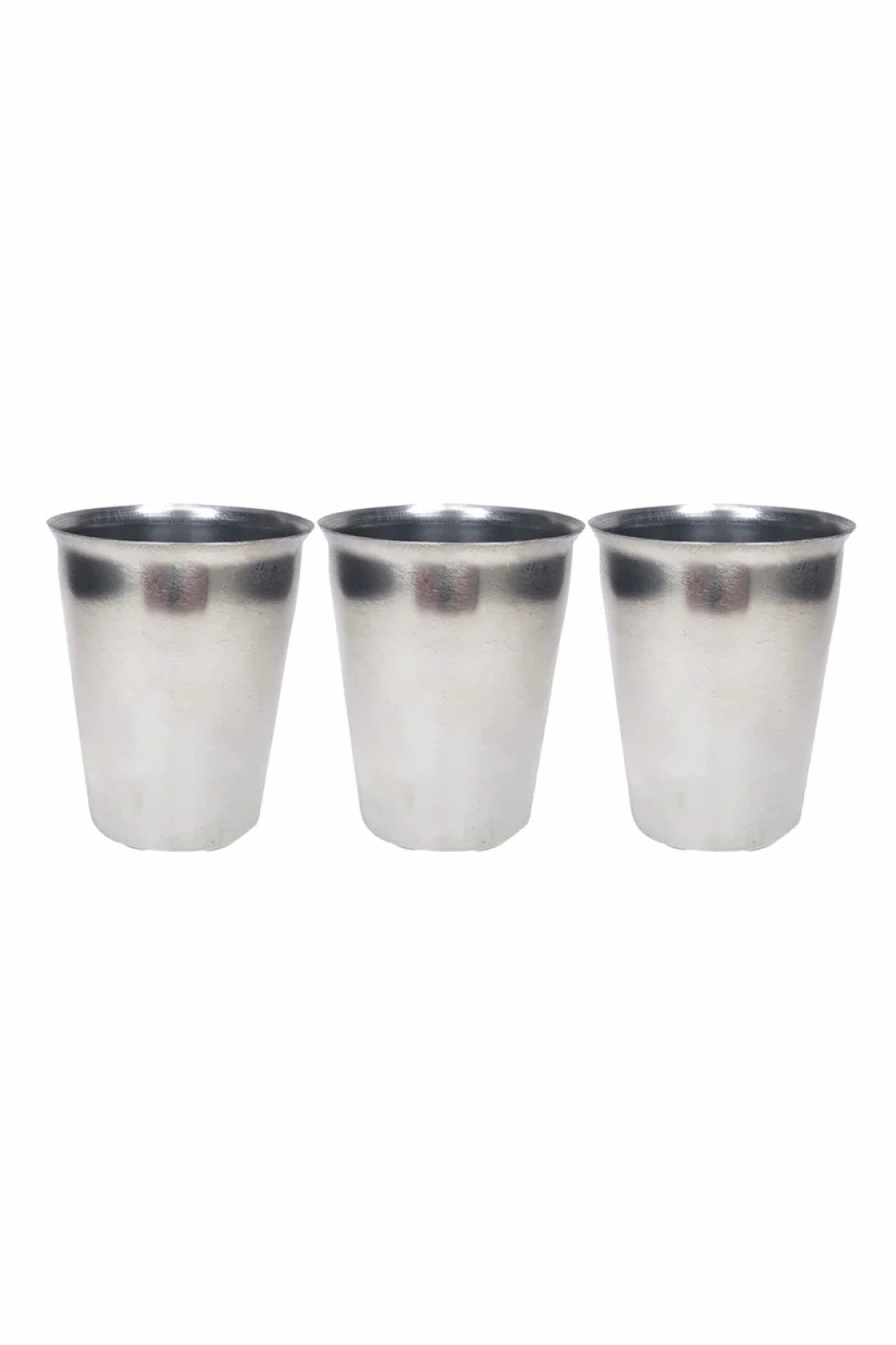 3 Adet Paslanmaz Çelik Krom Bardak 9 x 7,5 x 5,5cm