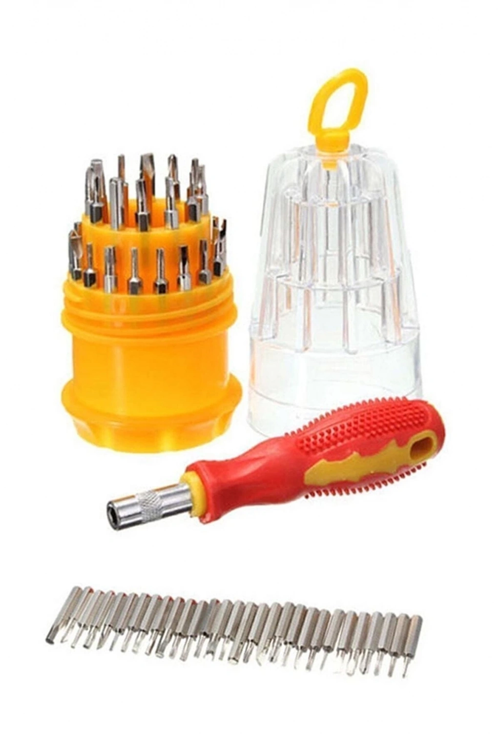 Telefon Elektronik Tamir Tornavida Seti 003 Özellikle cep telefonu ve elektronik alet tamiratlarında gerekli olan bu set ile tüm vidalama işlemlerini rahatlıkla yapabilirsiniz. Özel yer kaplamaz taşıma haznesi ile bir çok yere rahatlıkla sığdırabilirsiniz. Ayrıca evinizdeki birçok vidalama işi içinde uygundur. Dar alanlarda bile vidalama imkanı. Mıknatıslı gövde. Tornavida uzunluğu : 10cm. Özellikler : 31 Parça yıldız tornavida alyan Tornavida uzunluğu 10cm Muhafaza kutusu Paket İçeriği : 1 : Tutucu Kol 4 : Yıldız Tornavida -PH00-PHO-PH1-PH2 9 : Tork Tornavida - T3-T4-T5-T6-T7-T8-T10-T15-T20 5 : Düz Tornavida - 1.5-2-2.5-3-3.5 7 :Alyan uç 5 :Çeşitli uç -çatal uç-delikli uç-gibi 1 :Taşıma çantası plastik
