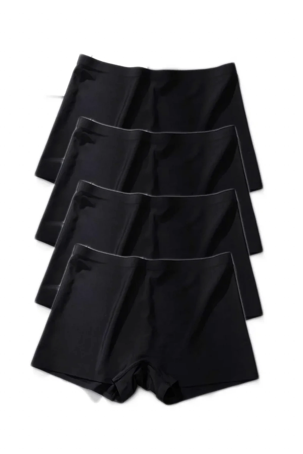 4 Adet Kadın Dikişsiz Görünmez İz Yapmaz Mini Şort Boxer Siyah