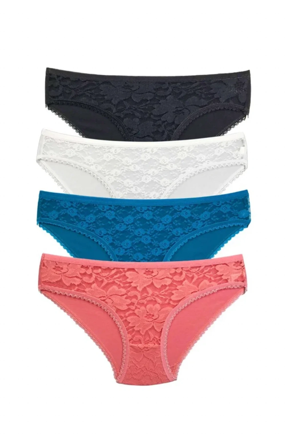 4 Adet Önü Dantelli Transparan Kadın Slip Külot S149