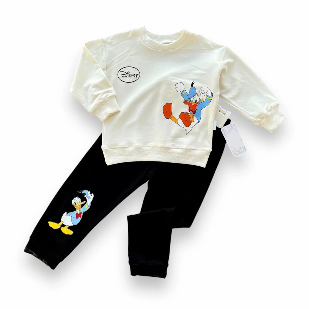 6-9-12-18 Ay Ördek Baskılı Pamuk Penye Kumaş Erkek Bebek Takımı Siyah