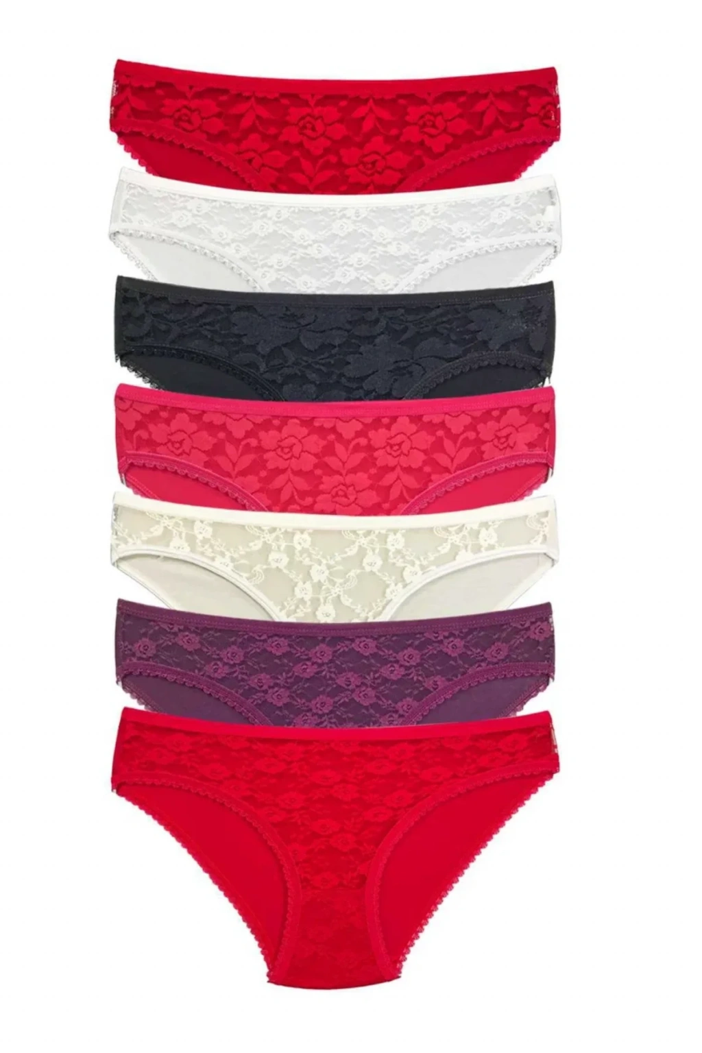 7 Adet Önü Dantelli Transparan Kadın Slip Külot S1