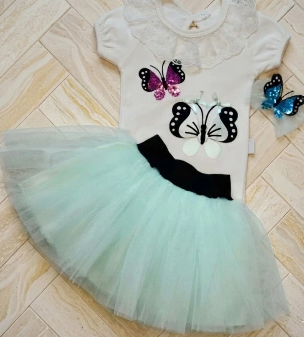 Şık Tasarım: Su yeşili rengi, payetli kelebek nakışı ve uyumlu tacıyla doğum günü, mevlit veya özel davetler için tam bir konsept sunar.