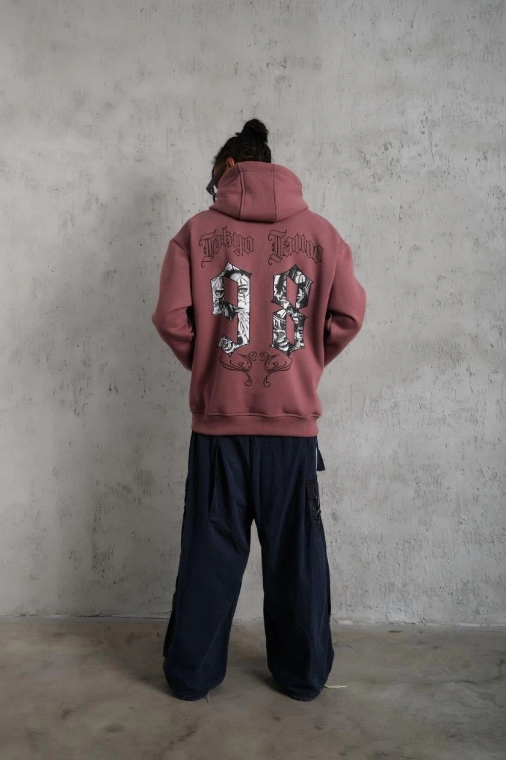 98 Baskılı Kapşonlu Sweat - Gül Kurusu