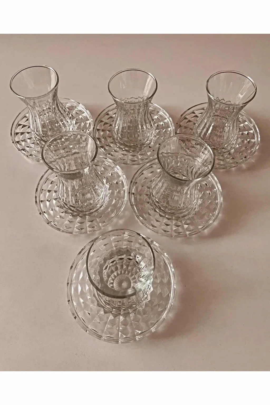 Alin Adela 6'lı Cam Çay Tabağı Çay Tabak Altlığı Biçomi-RYG8030