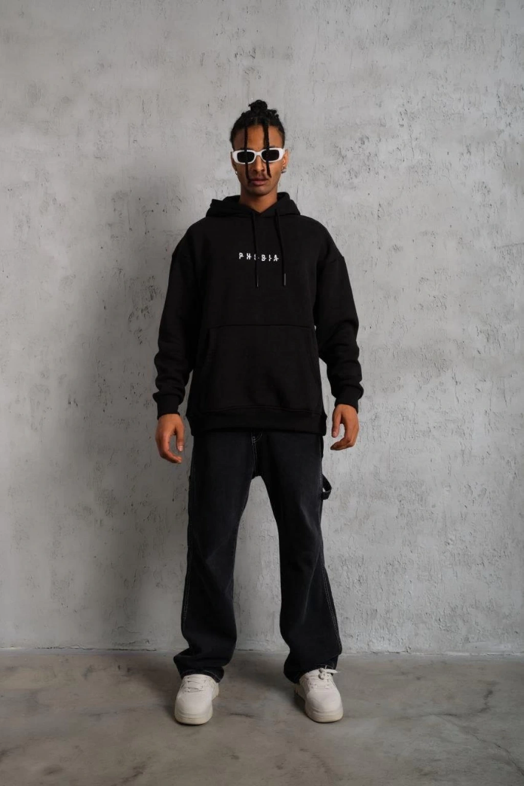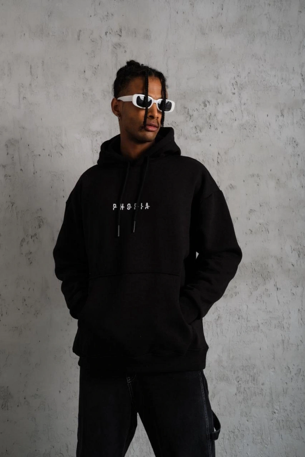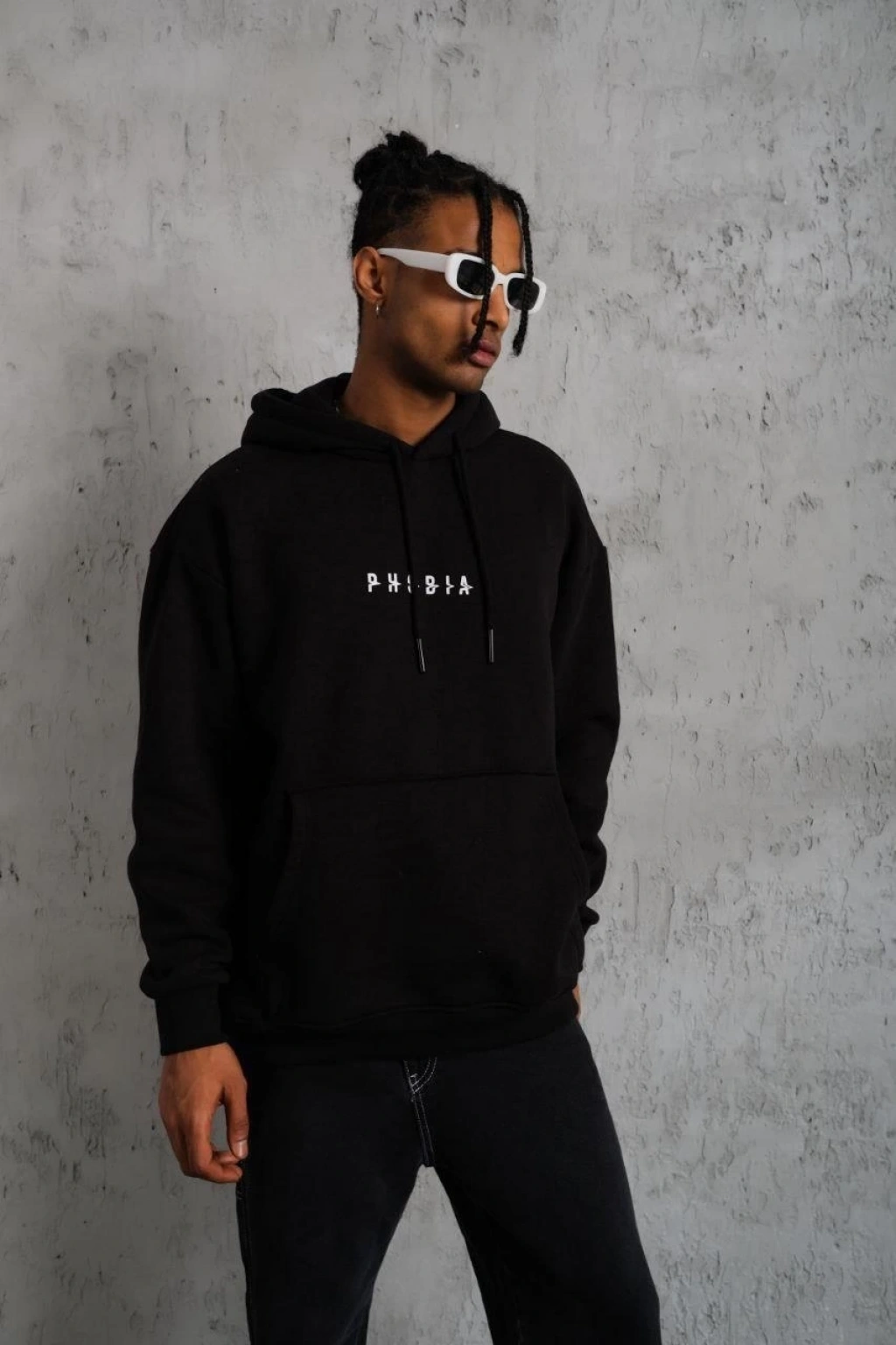 Astronot Baskılı Kapüşonlu Sweat - Siyah -