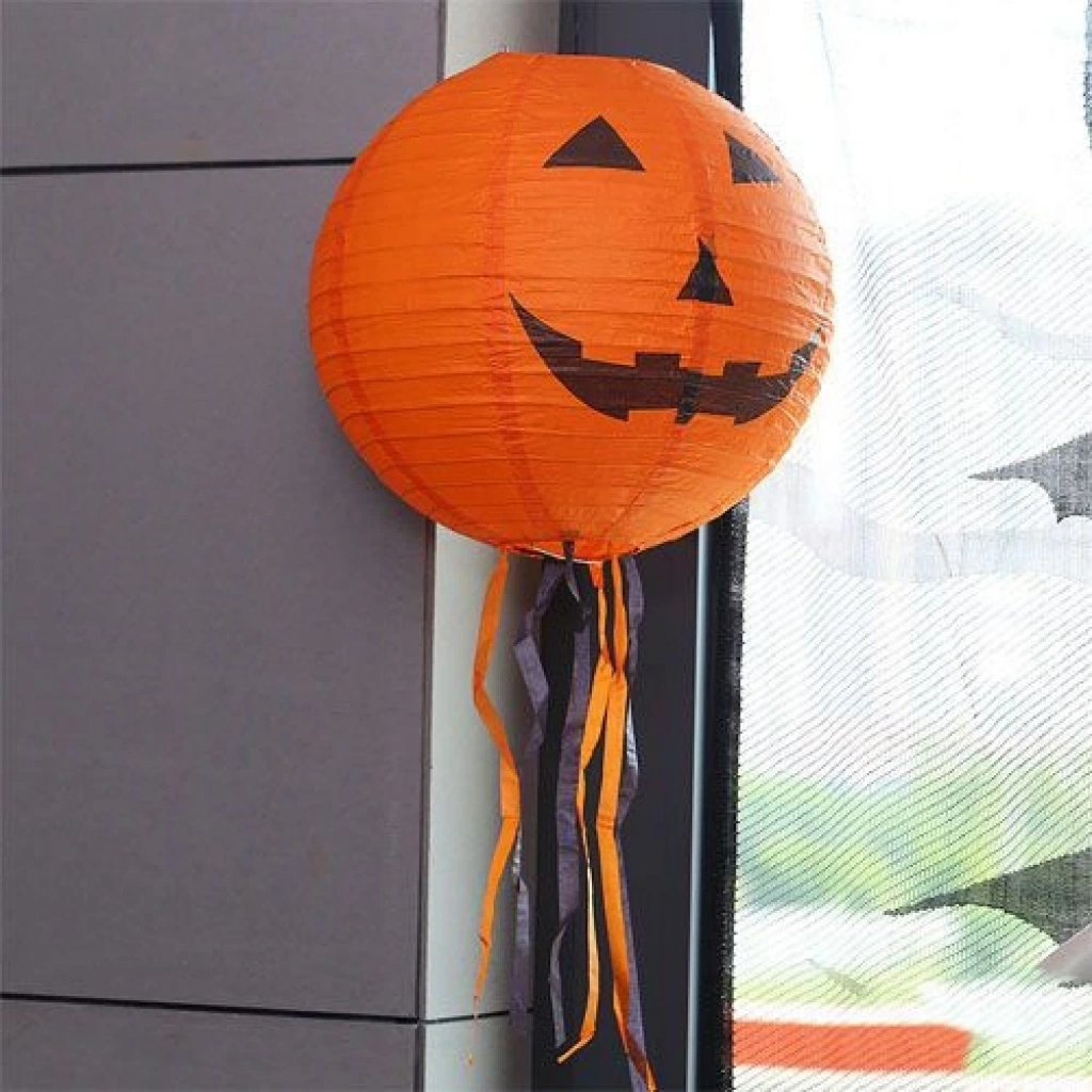 Balkabağı Kağıt Japon Led Süs - Kabak Dekor Yuvarlak Fener Süs 25 cm