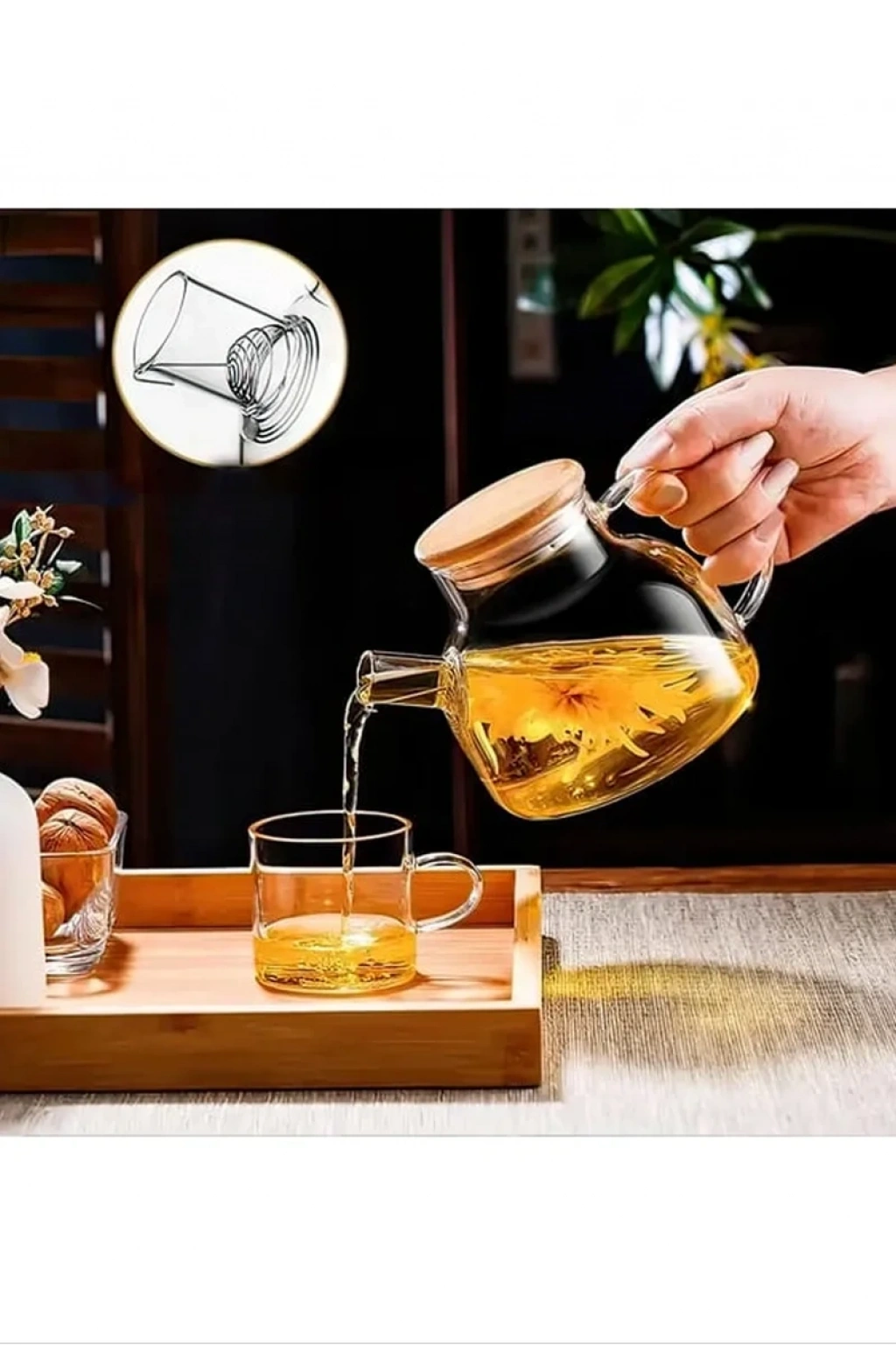 Bambu Kapaklı Borosilikat Cam Demlik 1000ml Biçomi-CM-2000